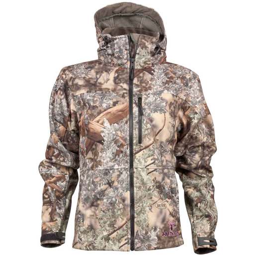 Kings Camo Women's Desert Shadow Hunter Wind-Defender Hunting Jacket - Built for women hunters. This is one of the most versatile jackets you will find. Weatherproof/windproof Waterproof membrane, but seams are not taped or 100% sealed Soft, quiet, and quick dry 100% polyester fleece Zip-off adjustable hood Drawstring waist Feminine cut Two hand zip pockets Jacket weight: 29.2oz Style: KCL2150