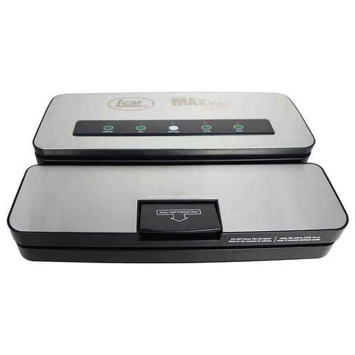 LEM MaxVac 250 220 Watt Vacuum Sealers - Seal up 250+ times without stopping! The MaxVac 250 is the latest addition to the LEM MaxVac family. This industrial grade vacuum sealer will extend the freshness and freezer life of your favorite foods. Protect your meat, game, fish, vegetables or fruit from freezer burn and seal in the nutrients. Removes air and automatically seals for an amazing storage solution. The stainless steel construction is countertop friendly and built to last. Save money by customizing your bag size with the integrated roll holder and cutter. The 1-handed locking lid makes it easy to use, no pressing necessary! Includes auto and manual functions that will allow you to control the vacuum time and keep delicate items from getting crushed. Detachable cord. As a bonus an 8" x 10' roll of bag material is included. Compatible with most national brand vacuum bags. Stainless Steel 25Hg Pump 13.39" Seal Bar 440.4 x 305 x 117.5 mm / 17.34" x 12" x 4.63" (LxWxH) One Handed Locking Lid 250+ consecutive seals Built in Roll holder/cutter hold/cuts up to 11" wide roll cuts both directions Includes 8" x 10' roll of bag material ETL-certified