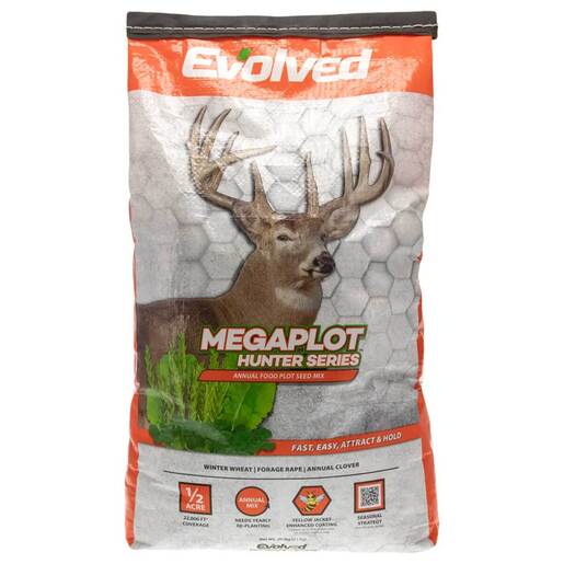 Evolved Habitats Megaplot Hunter Series Forage Seed - This game forage is a superb grain-based mix of triticale forage grain, oats, forage turnips and annual forage clovers. Plant in the spring or fall in most areas to grow palatable, high-protein forage all season. Filled With Vital Protein And Minerals Wide Variety Of Forage To Attract And Hold Game Keeps Growing Year-Round Highly Palatable Coverage: 1/2 acre ; 22,000 sq. ft.