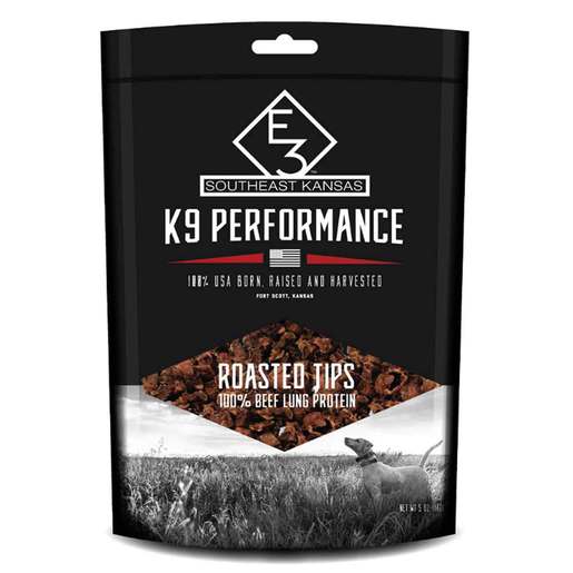 E3 K9 Performance Roasted Tips Dog Treats - At the E3 Ranch in America’s heartland, E3's respect for God’s creation drives them to fully utilize the cattle they raise, leaving nothing to waste. E3 designate every element – meat, bone, and hide – for re-purpose.