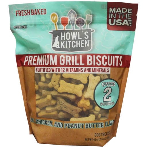Howl's Kitchen Premium Grill Biscuits - Howl's Kitchen Biscuits Premium Grill Biscuits are fortified with 12 vitamins and minerals to ensure healthy snacking! Made In The USA High Quality Ingredients Perfect Size For Snacking And Training
