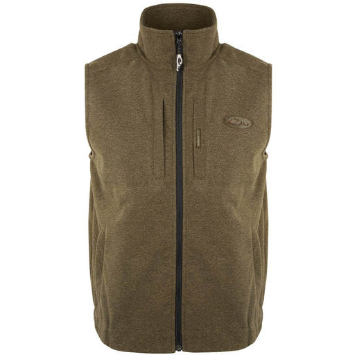 Drake Men's Heather Windproof Casual Vest - Whether it's in your blind or out on the town, this Heather Windproof Layering Vest is going to keep you warm while looking cool. 100% Knitted Polyester Vertical Magnattachâ„¢ Pocket Vertical Zippered Chest Pocket Two Lower Hand-warmer Pockets Elastic Waist Style: DW1605