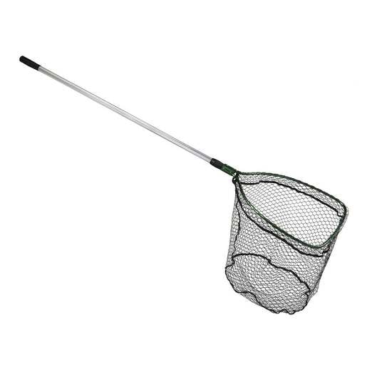 Beckman Adjustable Handle/Coated Nylon Landing Net - Green/Silver, 18in W x 22in L Built with the kokanee/trout angler in mind, this net is lightweight and features an extendable handle that reaches over 8 feet in length. The squared hoop design and added length ensures even the most agile of fish can’t escape. The coated bag makes for easy hook removal and fish care. Constructed with a twist lock so the angler can choose between a 4-8’ handle. Extendable to 8ft twist lock handle Squared hoop, added length prevents fish escape
