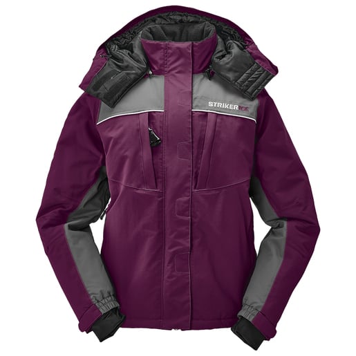 Striker Ice Prism Women's Ice Fishing Jacket - Female anglers willing to push the boundaries of the season choose Prism because of its perfect balance of style and comfort. Gone are the days of being “too cold” to fish. The Prism Jacket is loaded with 150g of Sureflote Flotation Assist tech for peace of mind on the ice. Built-in Heat Map lining combined with 150g of our traditional Thermadex insulation make this jacket truly one of the warmest and most comfortable. Quickly & safely cut braid or mono in seconds with the Line Cutterz Zipper Pull. Highly functional features like pre-curved elbows, underarm zip vents and quick access zip pockets make the Prism Jacket an essential piece of fishing gear. Lastly, stash an extra pair of gloves, or two, in the all new low-profile side entry storage compartment on the back of the jacket. 320D Nylon Tussor Shell Hydrapore Waterproof 5,000mm / Breathable 5,000g 150g Sureflote Flotation Assistance Technology 150g Thermadex Insulation Built-in Heat Map Technology Line Cutterz Zipper Puller Included Low Profile Side Entry Storage Pre-Curved Elbows Reflective Elements for Added Safety Underarm Zippered Vents “through-to-skin” Lycra Inner Cuffs Fast-Drain Hem and Sleeve Cuff