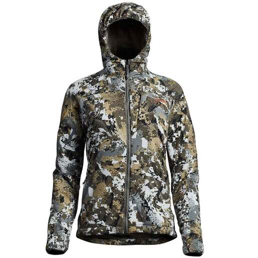 Women's Sitka Ambient Jacket - Sitka designed the Ambient Jacket to be durable, packable, and most of all, adaptable to changing weather conditions and levels of activity. Utilizing low-bulk PrimaLoft Evolve active insulation, this jacket delivers plenty of warmth when you're still, breathes well and manages moisture when you're moving and dries quickly if it gets wet. Ideal under a shell during cold weather hunts, on its own during brisk spring and fall evenings in camp, or tossed into your pack for summertime backpacking trips into the high country, there’s never a time when you don’t need this. 20D ripstop nylon fabric is built to take a beating 150g post-consumer recycled PrimaLoft Evolve active insulation for breathable low-bulk warmth Mechanical stretch enables a wide range of motion Durable water repellent finish sheds moisture and keeps fabric from wetting out Zippered hand and chest pockets provide secure storage Drop-away hood with stand-up collar for weather protection that won't impede your peripheral vision Total weight 142g Style: 600044