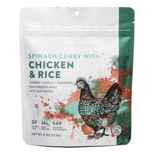Heather's Choice Spinach Curry with Chicken & Rice - This recipe is full of an unspeakable amount of spinach, organic ghee, and turmeric for its anti-inflammatory properties. It's also full of protein from organic chicken! Enjoy this meal with a slice of garlic naan and a cup of hot chai for a meal. that's reminiscent of your favorite take out.