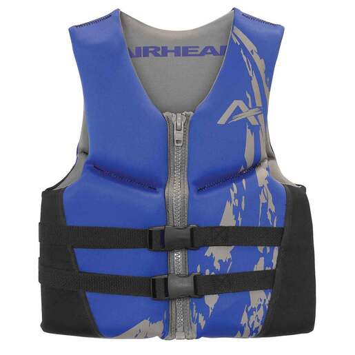 Airhead Swoosh Neolite Kwik-Dry Blue Life Jacket - The Swoosh adult life jacket is smooth to the touch and comfortable, making it great for all types of water adventures. This life jacket is also U.S. Coast Guard approved, meaning it meets requirements to keep you safe whether you’re boating, floating, tubing, or riding. In addition, the Kwik-Dry Neolite material is designed to wick away moisture and feel airy and light while you wear it. The durable zippered closure in the front offers a traditional vest design that goes with everything. Quick-release buckles make this life jacket easy to remove in an instant, and the tagless design offers ultimate comfort. The Swoosh features a modern design and is available in blue, red, or green. Disclaimer: For your convenience, please use the size chart and know that the Neolite life jackets may feel snug or run a little small. If you are unsure or in between sizes, we would recommend choosing the larger size. Type III: U.S. Coast Guard approved. Less bulky design for use when quick rescue is likely. Offers larger range of motion Closed-Sided: Offers a tighter and more secure fit to keep your life jacket in place Zippers: Easily and quickly fasten and remove your vest to stay safe in the water Neolite Kwik-Dry: Quick-drying and super soft. This fabric keeps you comfortable and dry all day long