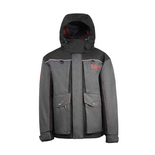 Eskimo Keeper Men's Ice Fishing Jacket - The purpose-built Keeper Jacket has become a staple for many ice anglers. The heavy-duty, yet lightweight DuraDry fabric stands up to mother nature’s worst conditions and keeps you warm and dry, time after time. The Keeper is cut to provide ease of movement and comfort, along with minimal bulk. The jacket features 80gm of 3M Thinsulate insulation in the body, and 60gm in the sleeves for retained mobility. In addition, Eskimo exclusive Uplyft Breathable Flotation assistance offers added safety, warmth, and breathability to the jacket. Find out why so many ice anglers trust the Keeper to keep them warm and comfortable on the ice. UPLYFT Breathable Flotation DURADRY Fabric Taped Seams Insulated 80 grams 3M Thinsulate Adjustable Hood Storage and Handwarming Protective Storm Flap YKK Zippers