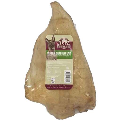 Wild Eats Water Buffalo Ear Dog Chew - Wild Eats Natural Water Buffalo Ears are a natural, single source of protein perfect to satisfy a K9s natural craving. Natural buffalo ears are made from free-range, grass-fed natural water buffalo for the highest quality chew. The natural texture of the water buffalo ear helps to clean teeth & gums as a pet chews, which aids in overall dental health. Wild Eats Water Buffalo ears are also gluten-free & grain free. Antibiotic-free with no added hormones No additives or preservatives Slow roasted long lasting chew