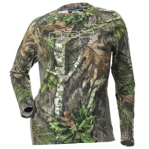 DSG Outerwear Women's Mossy Oak Obsession Ultra Lightweight Long Sleeve Hunting Shirt - Ultra Lightweight Camo shirt that will help keep you cool on those warmer hunting days! This shirt keeps your skin protected from the sun with UPF 50+ protection, and the mesh panels on the sides allow air to flow through to keep your core ventilated. With moisture wicking and quick dry material will also aid in keeping your body cool! UPF 50+ Protection Moisture Wicking Quick Dry Mesh side panels for ventilation Early Season Style: 52105