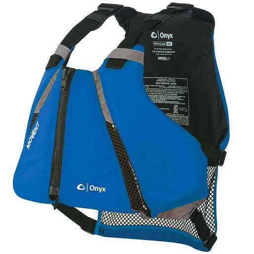 Onyx Movement Curve Life Jacket - The Onyx MoveVent Curve vest features a sculpted flexible foam design that conforms to your body and stays in place when paddling, and the large armholes provide excellent mobility for kayaking and canoeing. The mesh panel in back to accommodates most canoe and kayak seats. Mesh ventilation in front and back for breathability Mesh panel in back to accommodate most canoe and kayak seats Shoulder adjustments with neoprene comfort pads Adjustable side belts Durable zipper closure U.S. Coast Guard approved and Transport Canada approved