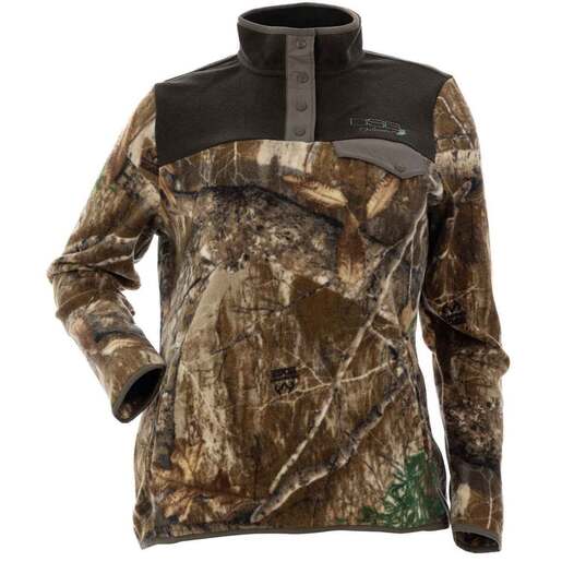 DSG Outerwear Women's Realtree Edge Gianna 2.0 Long Sleeve Hunting Shirt - Perfect for keeping you warm and comfortable during your next hunting trip or casual outing, the Gianna 2.0 Pullover is the most cozy and versatile hunting pullover yet. Made with soft micro fleece fabric, this pullover is finished with a DWR treatment for water repellency, ensuring you stay dry and comfortable in light rain or snow. Soft micro fleece fabric finished with a DWR treatment for water repellency Soft elastic binding around collar, cuff openings, and bottom hem Center front quarter snapped ripstop placket Chest pocket with snap closure Hand warmer pockets Style: 516582