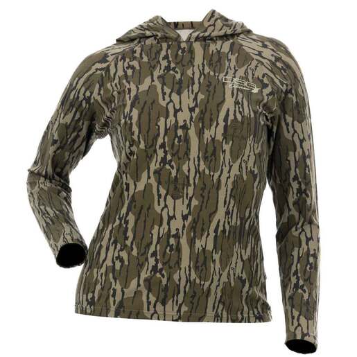 DSG Outerwear Women's Mossy Oak Bottomland Original Bamboo Long Sleeve Hunting Shirt - Achieve unparalleled comfort and style with the new long sleeve hooded shirt. Made with a super soft Bamboo Viscose blend material, this shirt is as durable as it is comfortable—whether you're hunting, hiking, or doing chores in the outdoors. Made with Bamboo Viscose blend material UPF 30+ sun protection Stretch fabric for comfortable fit DSG logos Style: 517039