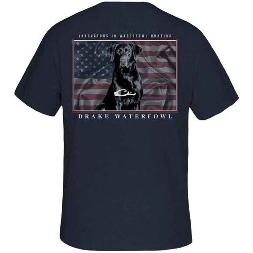 Drake Men's American Lab Short-Sleeve Casual Shirt - The Drake Waterfowl Graphic Shirt has a Drake logo on the front pocket and depicts an American Flag with Lab overprint from Drake's Americana Series of graphic tees. Lightweight at 180 GSM Drake logo pocket on the front Large graphic on the back Style: DT9495