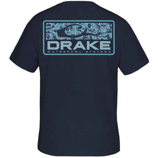 Drake Men's School Bar Short-Sleeve Casual Shirt - Featuring a back screen print of Drake's exclusive Old School Camo with the Drake Logo overprint from the Old School Series. Front left chest pocket features our classic Drake Waterfowl logo. 60% cotton/40% polyester Lightweight at 180 GSM Drake logo pocket on the front Style: DT9275