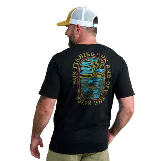 Huk Men's Oval Cast Short-Sleeve Shirt - The Oval Cast Tee is the perfect choice for any anglers wardrobe. Crafted with a 50/50 cotton/performance blend, it provides all-day comfort and top-notch performance. 50% cotton/50% polyester Large graphic on the back Style: H1000521