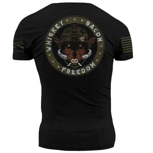 Grunt Style Men's Whiskey.Bacon.Freedom Short-Sleeve Casual Shirt - The Men's Grunt Style Whiskey.Bacon.Freedom. T-Shirt is designed with comfort and style in mind. Large graphic on the back Small "smells like frredom graphic on the front Style: GS4531