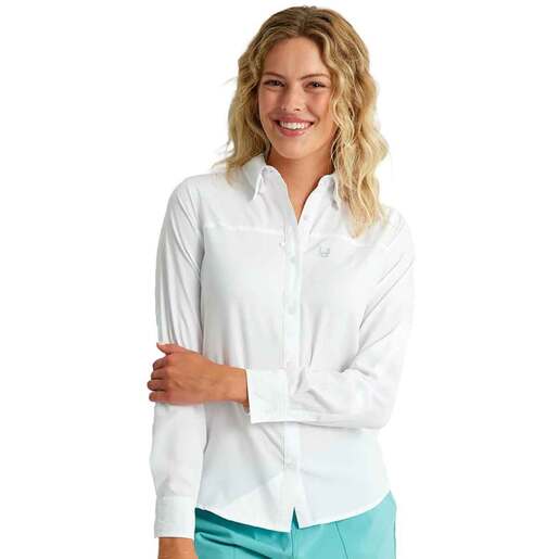 Huk Women's Tide Point Long Sleeve Fishing Shirt - Designed to work seamlessly in and out of the boat, the Tide Point ensures lasting comfort for a host of water-related activities. 30+ UPF rating Quick drying Interior glasses wipe Two-way stretch Style: H6150006