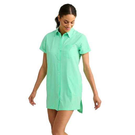 Huk Women's Kona Cover-Up Dress - Easy, breezy, and made to move with you, meet your new sunshine staple, the Kona Cover-Up Dress. This lightweight, flirty and effortlessly cool buttondown is made for beachside cocktails, poolside lounging, and all your summer adventures. 30+ UPF rating Hand pockets Interior eye wipe Dress hits at mid-thigh Quick drying Style: H6150011