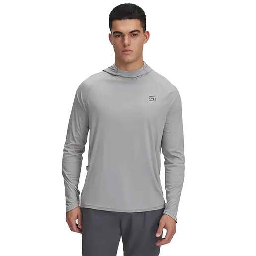 Under Armour Men's Fish Elite Hooded Long Sleeve Fishing Shirt - On or off the water, you'll wear this hoodie. It's light, stretchy, dries quick—oh, and it's ridiculously comfortable too. Plus, with the built-in sun protection you can go just about anywhere. One of our lightest, fastest-drying, most breathable fabrics—& it feels super soft UPF 40 protects your skin from the sun's harmful rays Material wicks sweat & dries really fast 4-way stretch material moves better in every direction Side drop-in pocket Extended sleeve cuff & built-in thumb loops help keep sleeves in place Raglan sleeves Style: 1388957