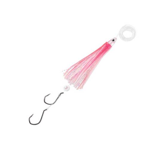 Luhr Jensen Flash Fly Rig Squid Skirt - Tthe Jensen Flash Fly is a highly versatile lure that performs best at 1 - 4 miles per hour, when affixed behind Luhr-Jensen Dipsy Divers, Jensen Dodgers, and Coyote Flashers. Realistic arrow-shaped head and multi-layered skirt create lively fish calling action Sliding pro-rig with 48in 12lb Sufix monofilament leader 2 VMC TechSet hooks lock fish in place UV Bright finish reflects more light energy strengthening visibility Everglo finishes glow-in-the-dark