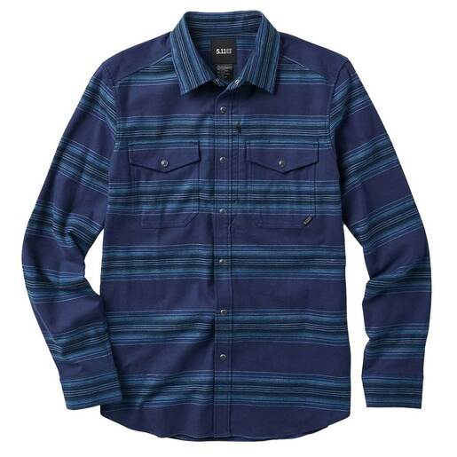 5-11Tactical Men's Austin Stripe Flannel Long Sleeve Hunting Shirt - The Austin holds strong from punch-in to wind-down. Carries midweight muscle. Breathes easy. Made to grind through shifts, stacks, and whatever rolls in. Layer it. Roll it. Button it down. This flannel pulls its weight. Every single day. Midweight construction is built for layering and all-season versatility Chest patch pockets with snap flaps for a classic style with secure storage Pen guide on pocket flap keeps writing tools right where you need them Subtle 5.11 branding with woven label and [+] embroidery Collar with collar band maintains structure and a sharp look Left chest doc pocket with hidden zipper provide low-profile storage Adjustable snap cuffs and sleeve placket lets you roll up or button down Style: 7710159