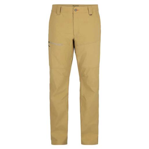 Simms Men's Guide Fishing Pants - Step into the guide-caliber pant that brings ultimate mobility and rugged durability to the trail, boat and wet-wading days of summer. Built with wading in mind, this water-shedding nylon-spandex blend material will move with you, dry fast and protect you from the sun's rays on hot summer days. Fixed waistband with reinforced belt loops, shank front closure and interior drawcord to cinch secure when wet wading Two front drop-in hand pockets and two back pockets. Back right pocket zips closed to secure essentials. All pocket bags are mesh-lined for fast water drainage Laser-cut, zippered right thigh pocket with a mesh-lined pocket bag for fast water drainage Built-in stretch with back yoke panel on the bias, gusseted crotch with drain holes and articulated knee panels for ease of movement 94% nylon/6% spandex, 138 gsm two way stretch woven weave with DWR Pocket Lining - 100% polyester woven mesh Style: 14374