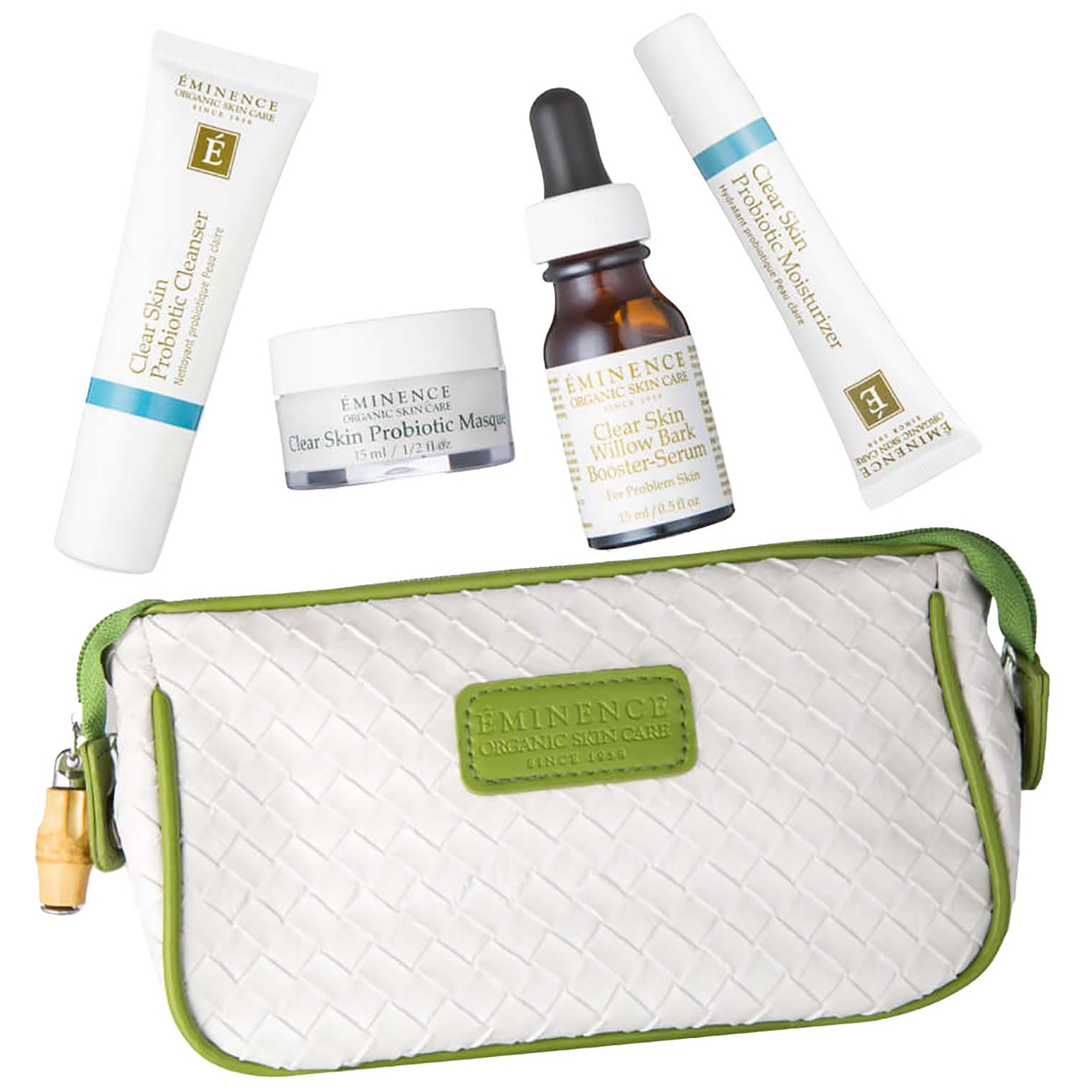 Eminence Clear Skin Starter Set is beautifully packaged with a one-month's supply of targeted organic products to treat oily and problem skin types. Starter Set Includes:Clear Skin Probiotic Cleanser (1 oz / 30 ml tube)Clear Skin Probiotic Moisturizer (0. 5 oz / 15 ml tube)Clear Skin Probiotic Masque (0. 5 oz / 15 ml jar)Clear Skin Willow Bark Booster-Serum (0. 5 oz / 15 ml bottle)One classic cosmetic bag in woven faux leather with bamboo zipper. Dermstore has partnered with Flex to allow you to use your Health Savings Account (HSA) or Flexible Spending Account (FSA). This means you can now use your HSA or FSA debit card to buy Eminence Organic Skin Care products with pre-tax dollars, resulting in net savings of 30-40%, depending on your tax bracket. Eligible for HSA/FSA with a letter of medical necessity at checkout. From dermatologist-recommended treatments to solutions for chronic skin conditions like acne, eczema, and rosacea, these products are both effective and eligible. | Eminence Organic Skin Care Clear Skin Starter Set 4 piece | Dermstore