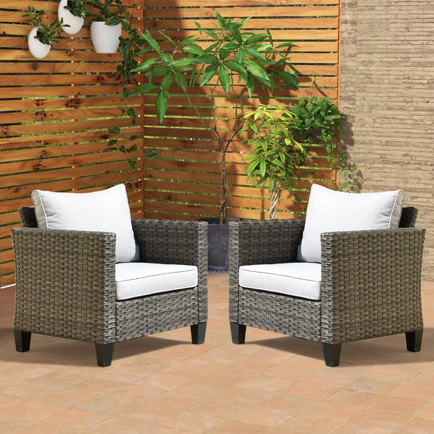 Add some comfortable seating to your patio area with this 2-piece high back wicker chair set. This set is made from handwoven wicker make the whole set much more sturdy. The high-density cushion gives you strong lumbar support for better comfort.