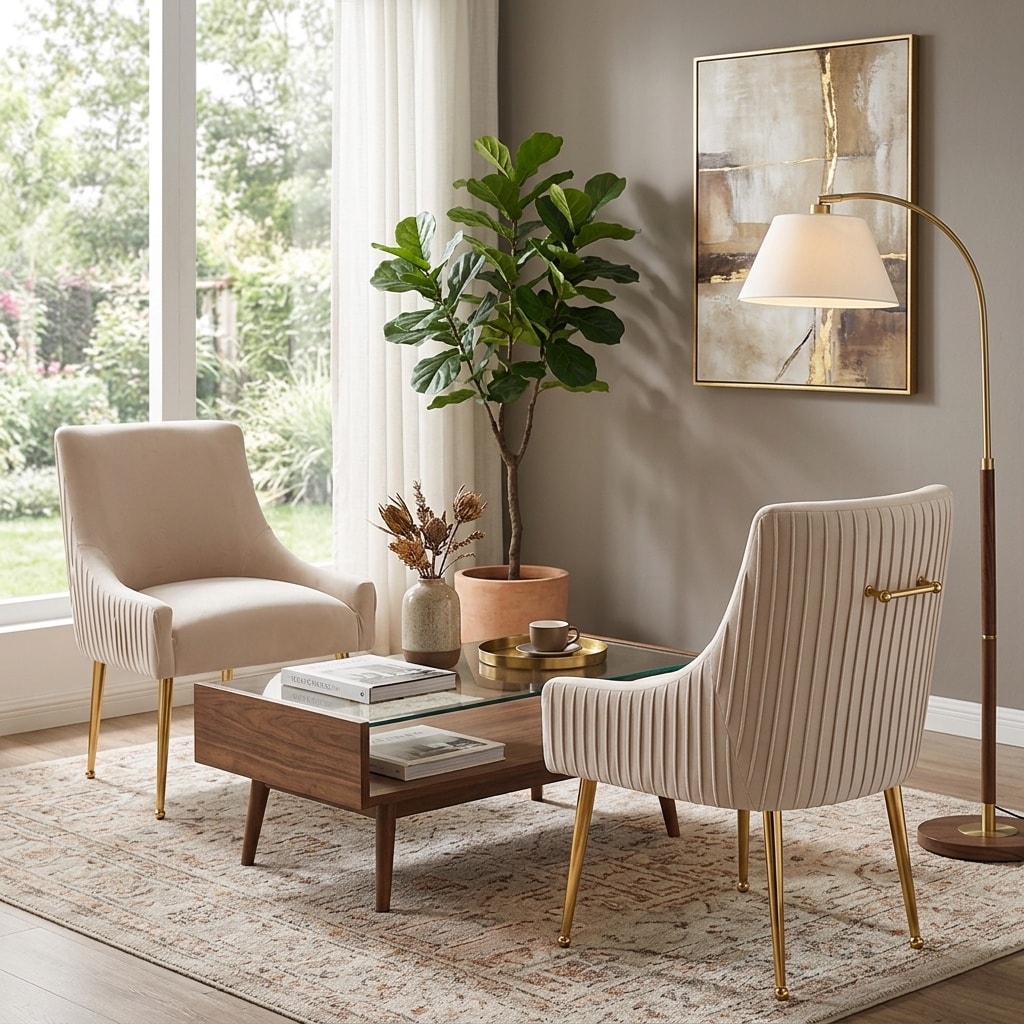SEYNAR Modern Glam Boucle Pleated Velvet Dining Chair or Vanity Chair Set of 2 with Rear Handle($344.99Value)