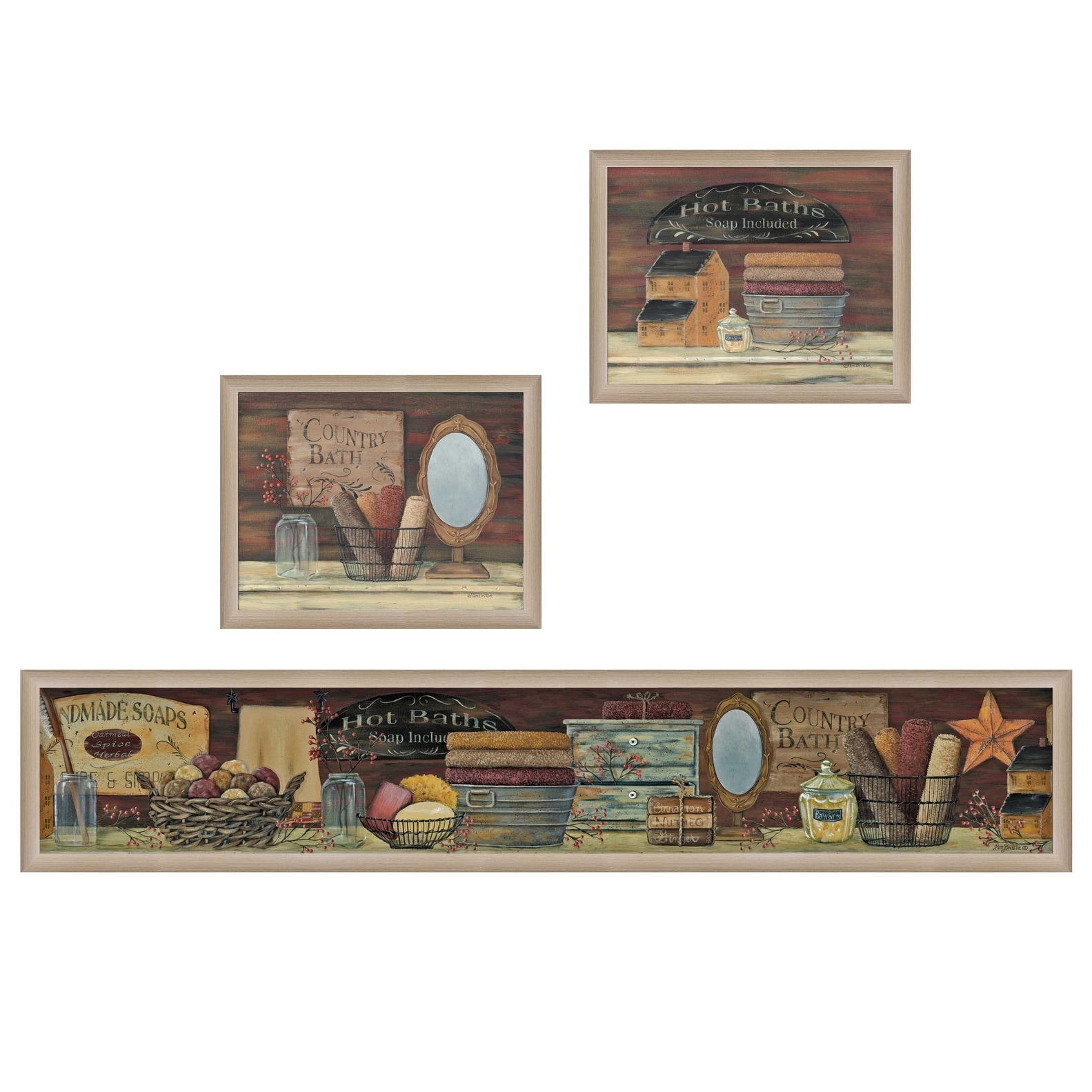 Unique and decorative, this set of three country bath 2 brown framed print bathroom wall art will leave a lasting impression. This print is a visual artistic expression that allows you to decorate your space in style.