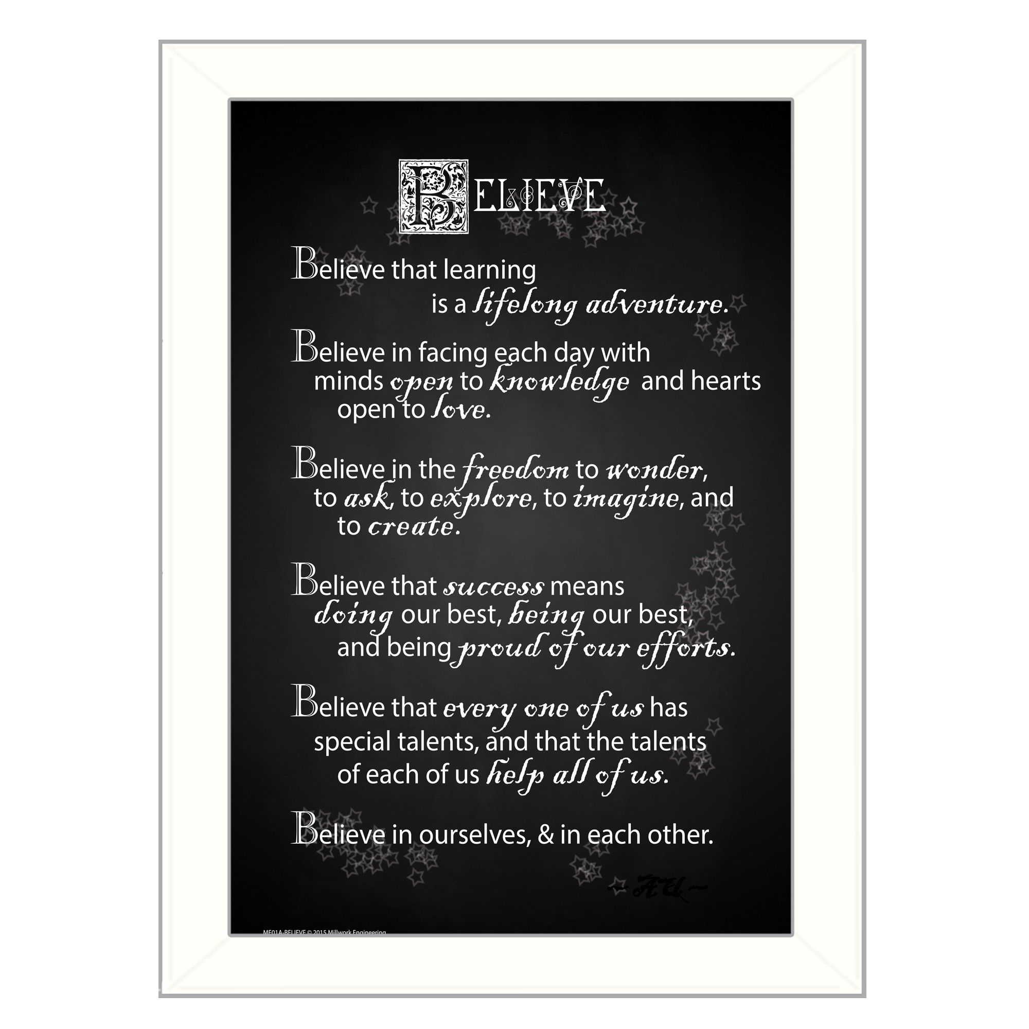 Unique and decorative, this believe 1 white framed print living room wall art will leave a lasting impression. This print is a visual artistic expression that allows you to decorate your space in style.