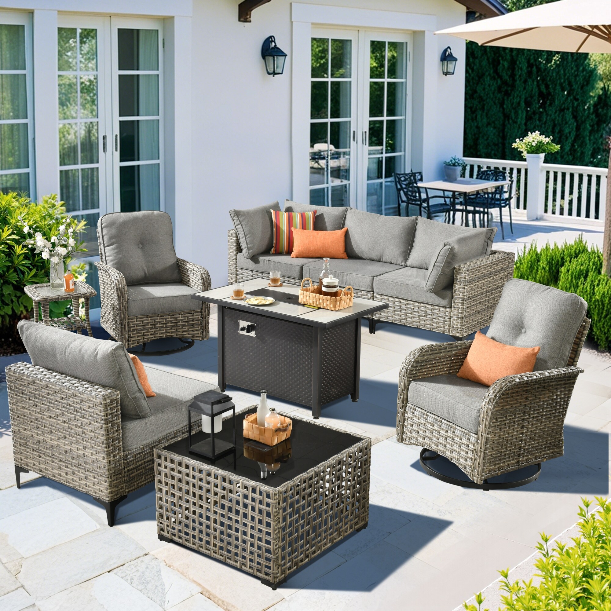 Enjoy your family outdoor time with HOOOWOOO 9-piece Wicker Outdoor Furniture Patio Sofa Swivel Chair Set. This set is made form powder-coated steel, hand wrapped in PE wicker to ensure durability and stability.