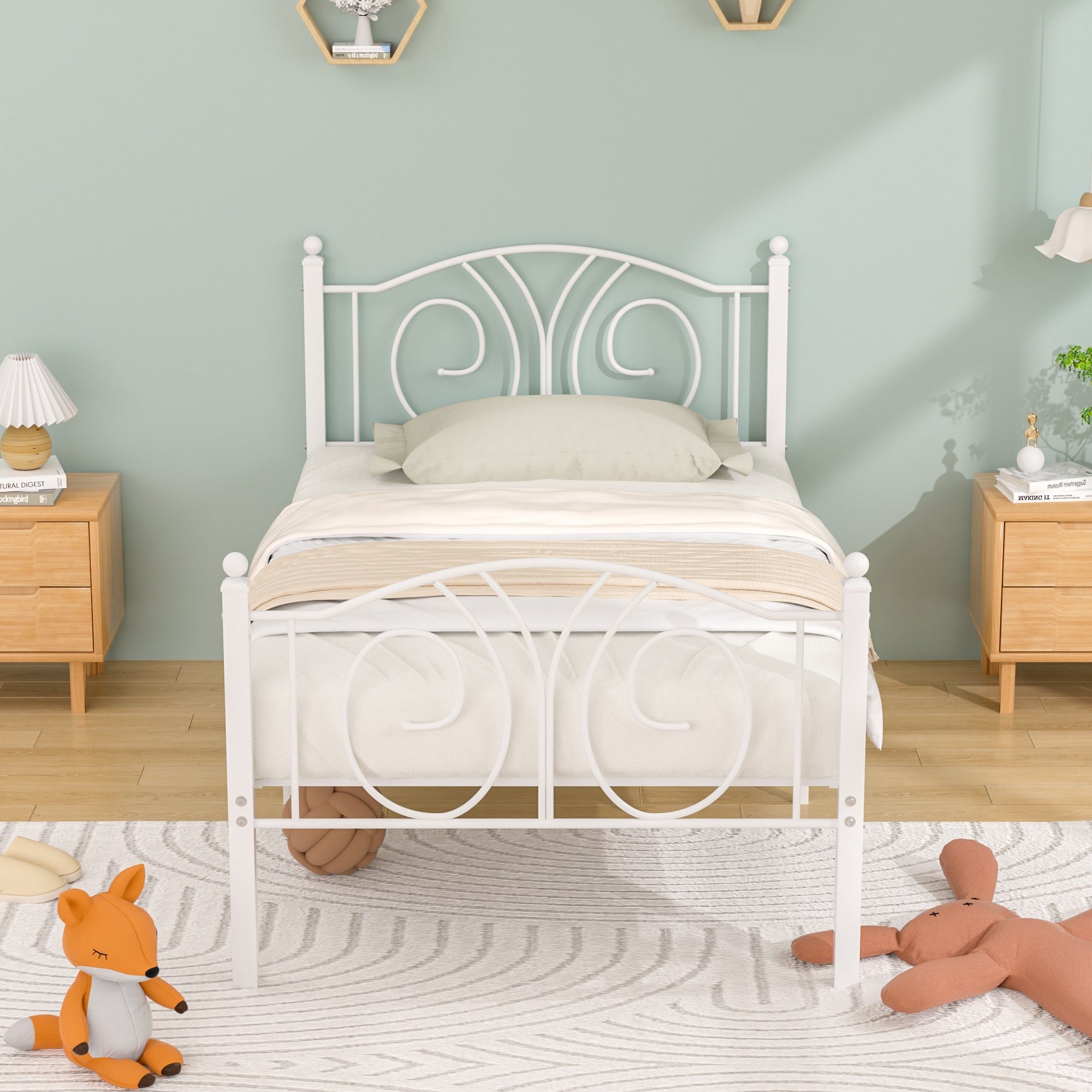 VECELO Platform Bed Frame with Scroll Headboard Twin/Full/Queen Size Beds($105.99Value)