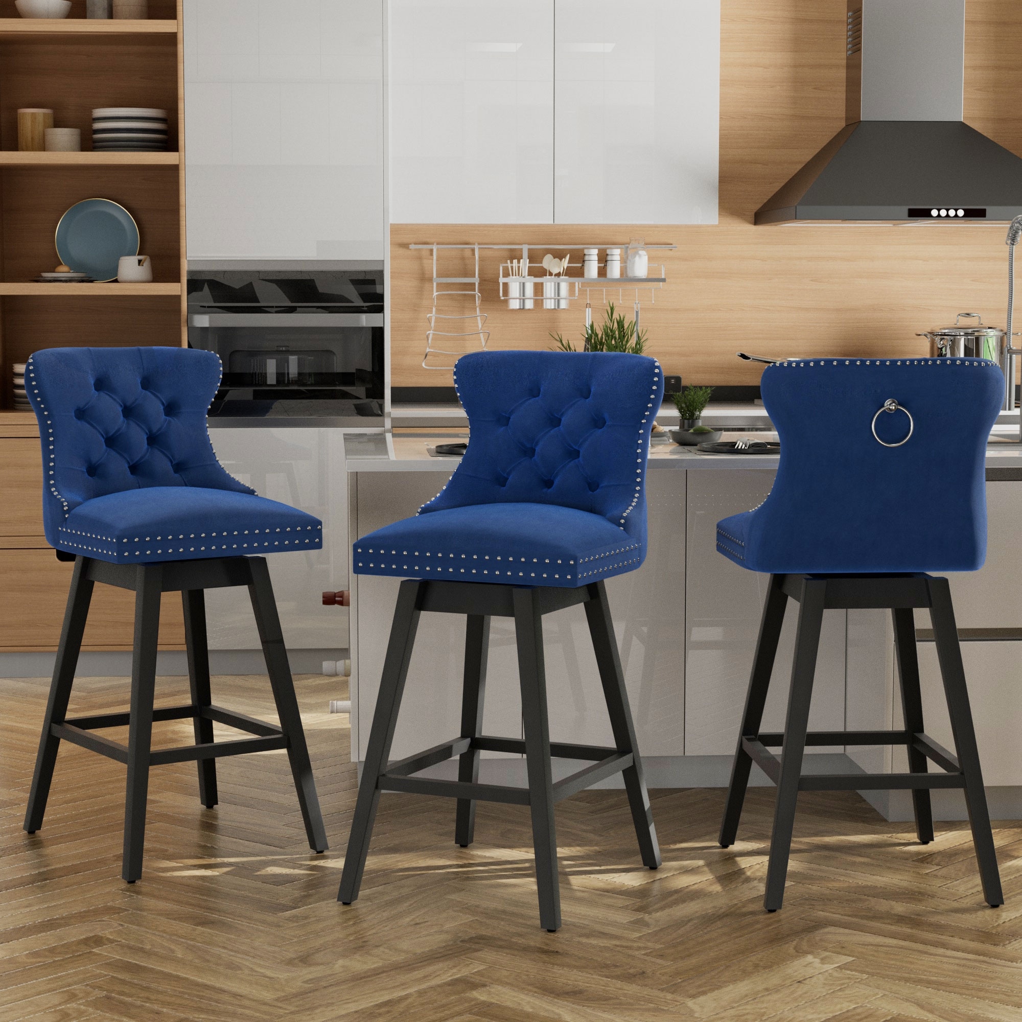 26"/30" Velvet Upholstered Swivel Counter or Bar Height Stools with Wood Frame($610.99Value)