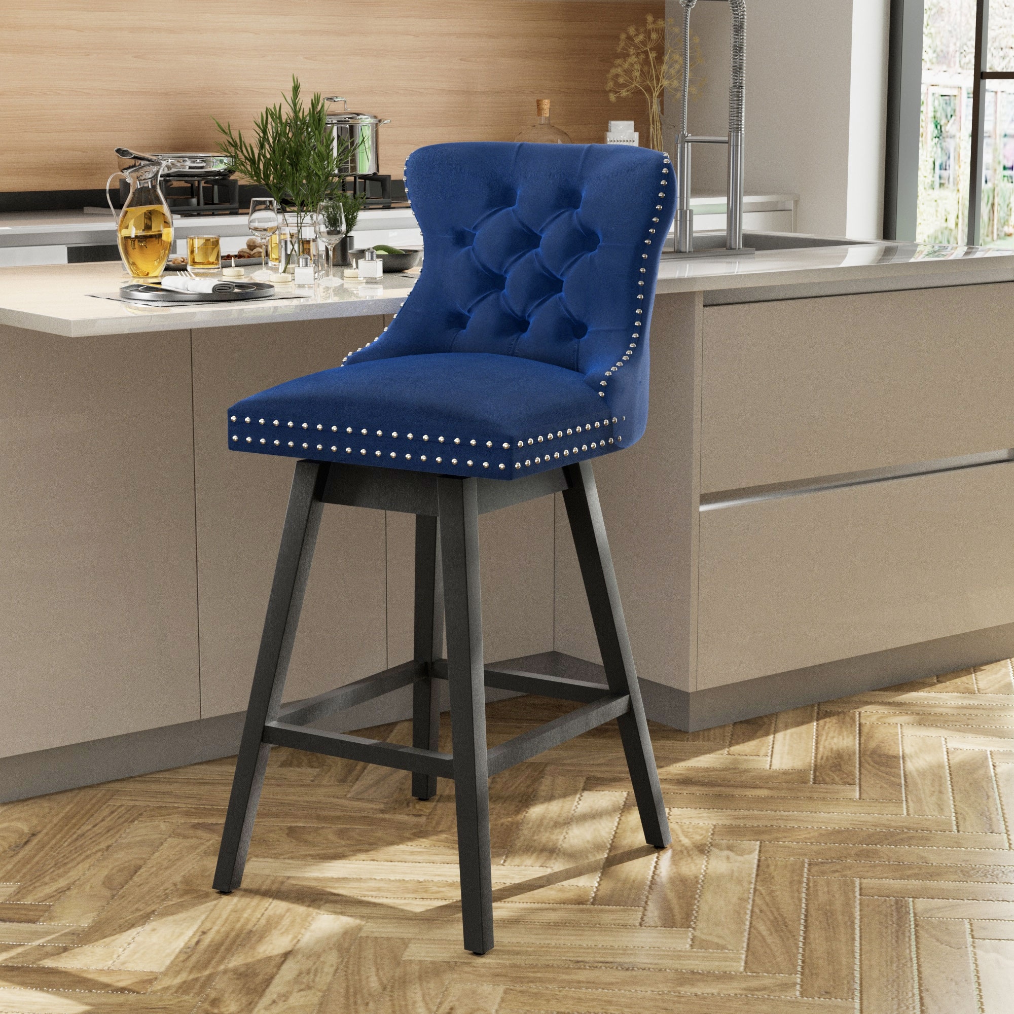 26"/30" Velvet Upholstered Swivel Counter or Bar Height Stools with Wood Frame($230.49Value)