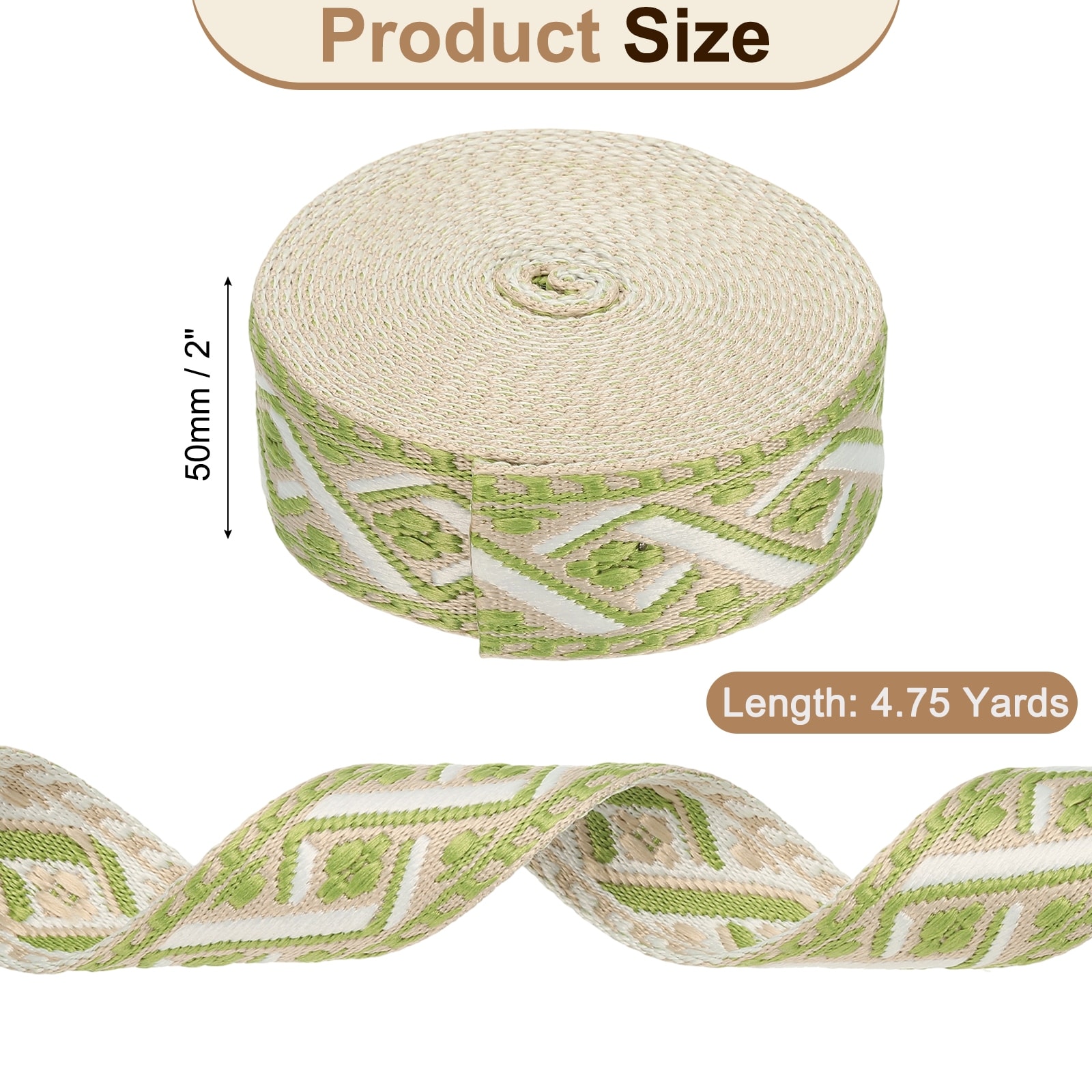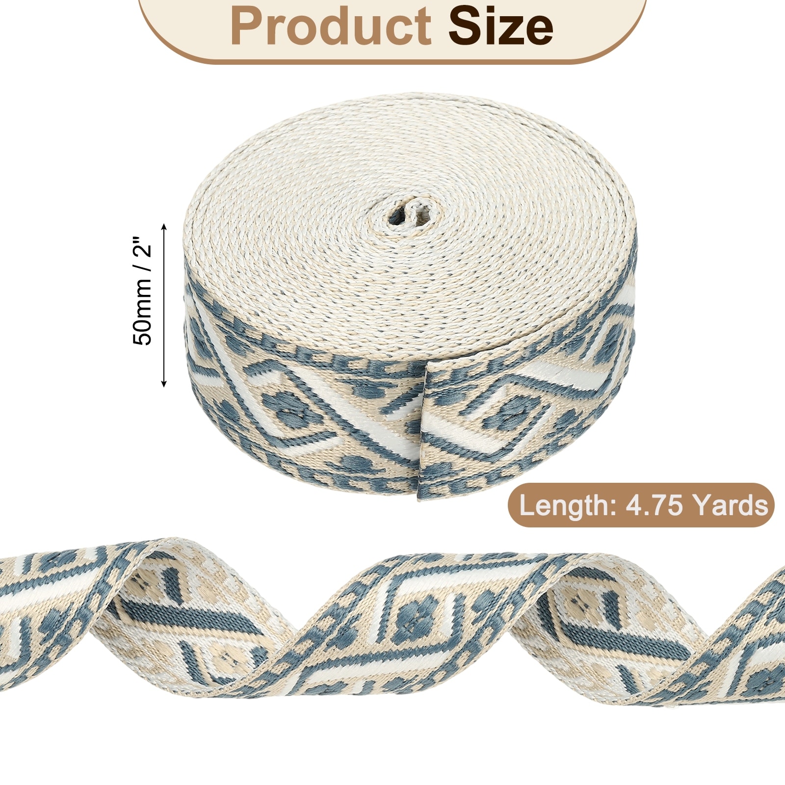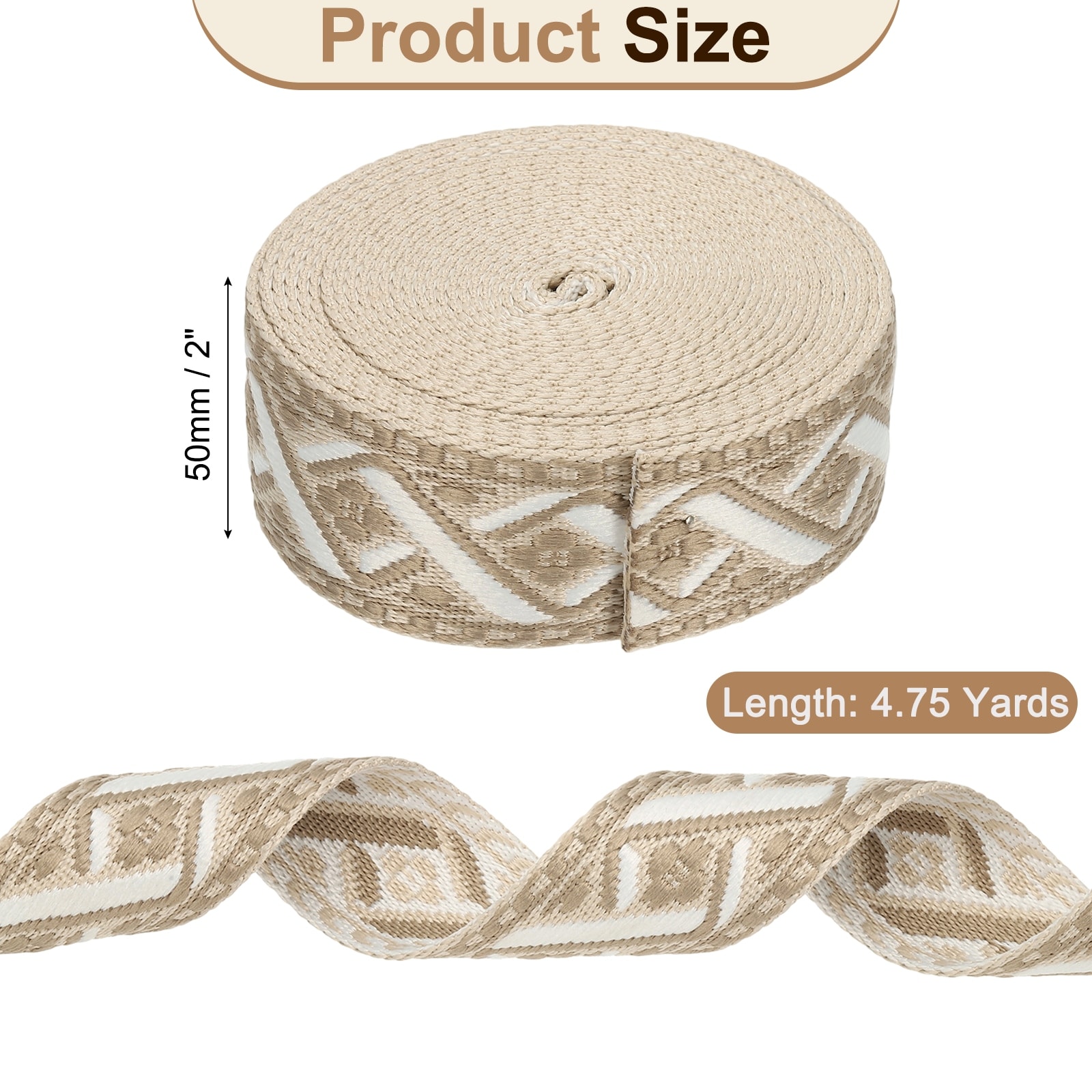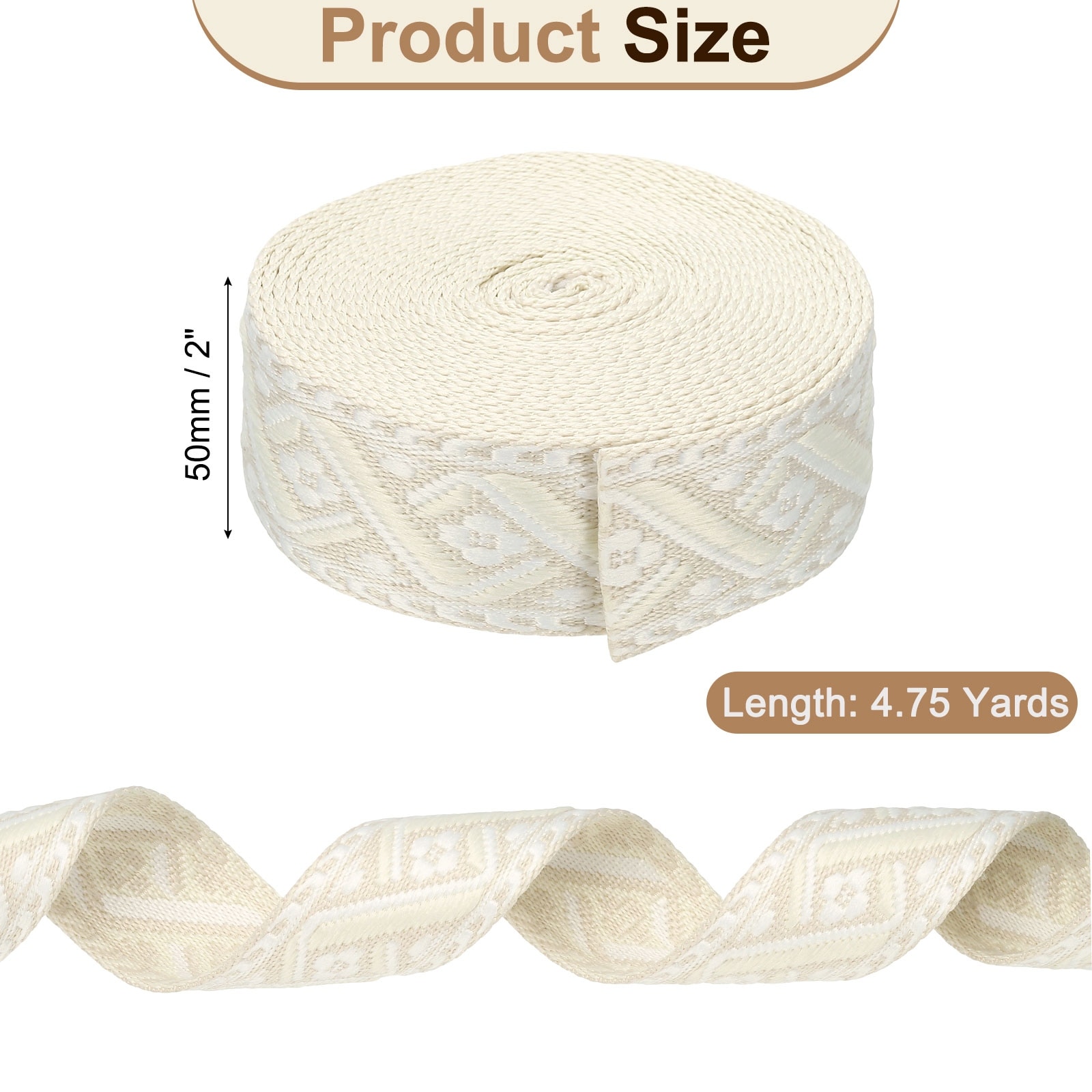 Cotton Webbing Strap Jacquard Webbing Ribbon Embroidery Polyester Webbing Straps Purse Strap Belt for Purse - 4.75Yards x 50mm