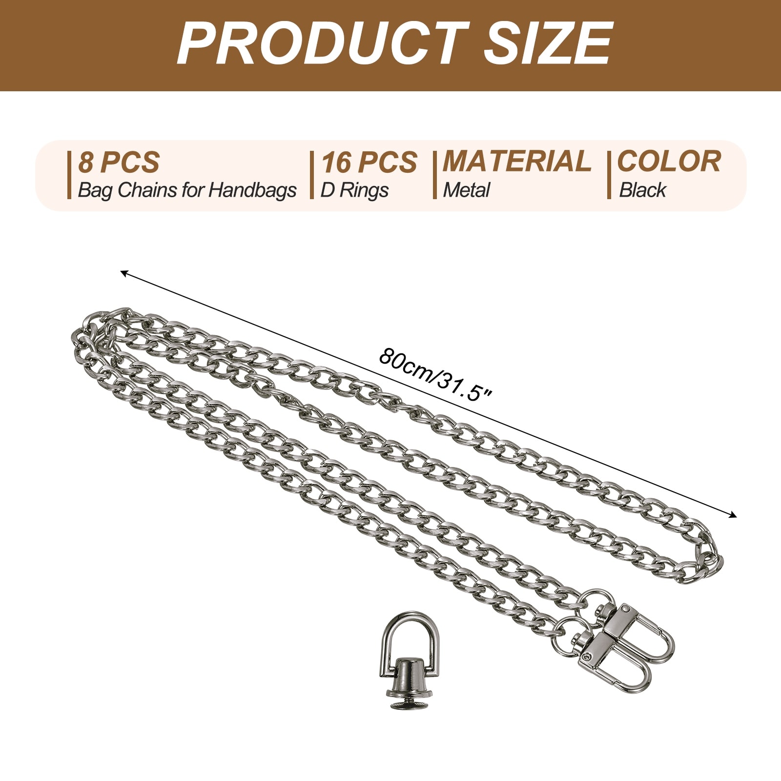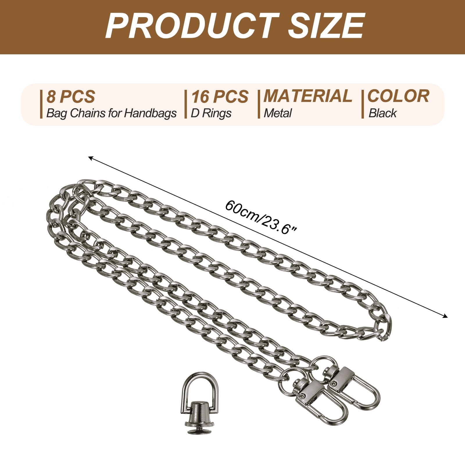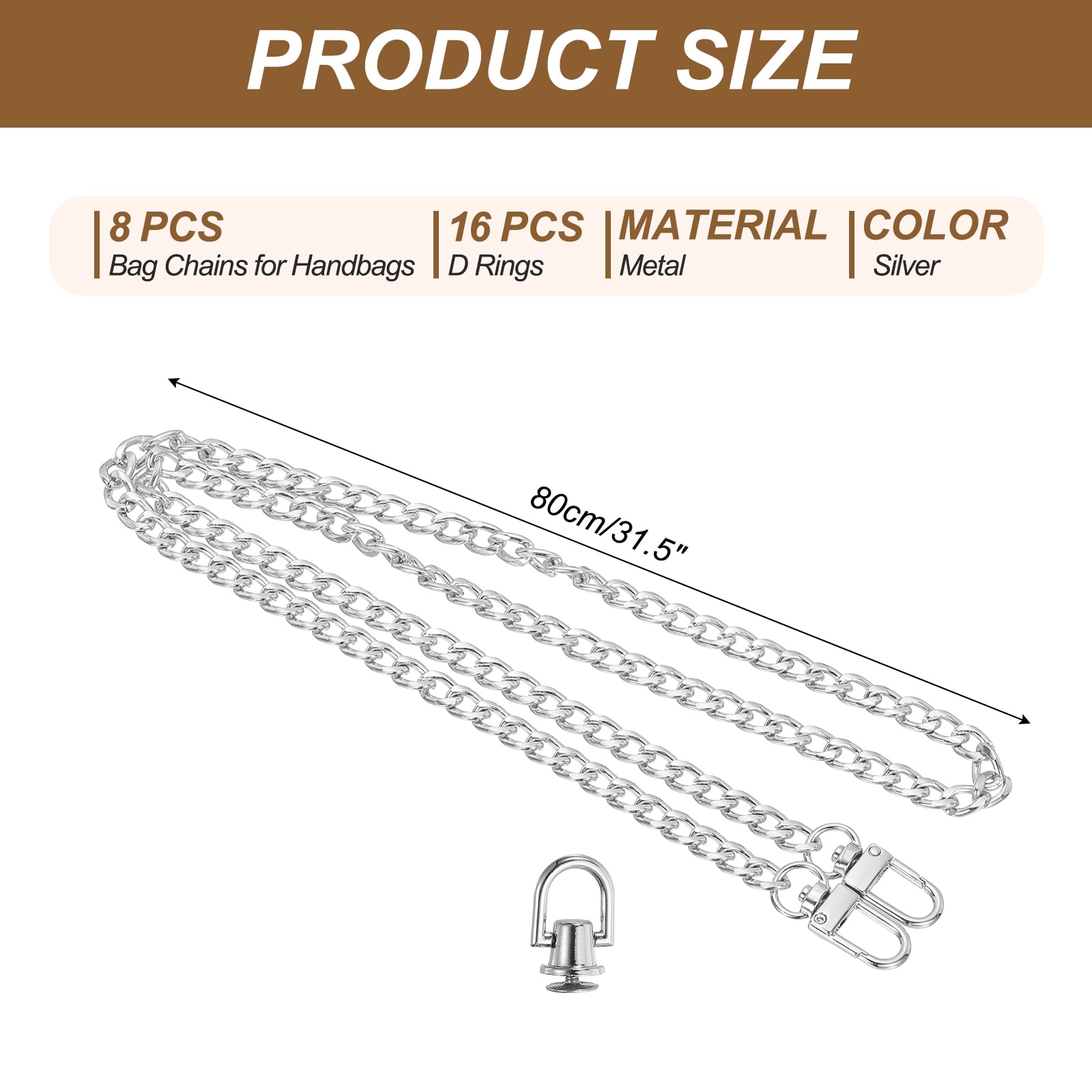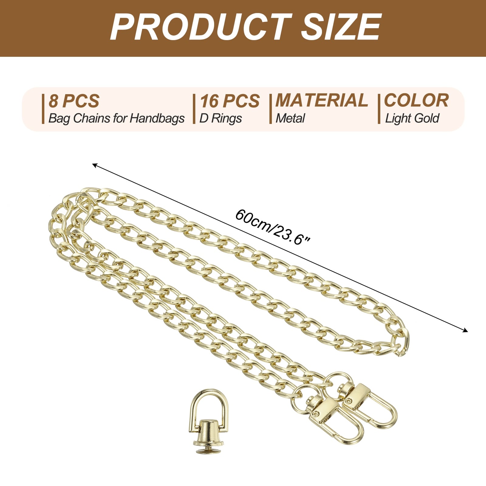 Flat Purse Chain Chain Purse Strap Handbag Chains Crossbody Straps Extender with D-Rings for Tote Wallet