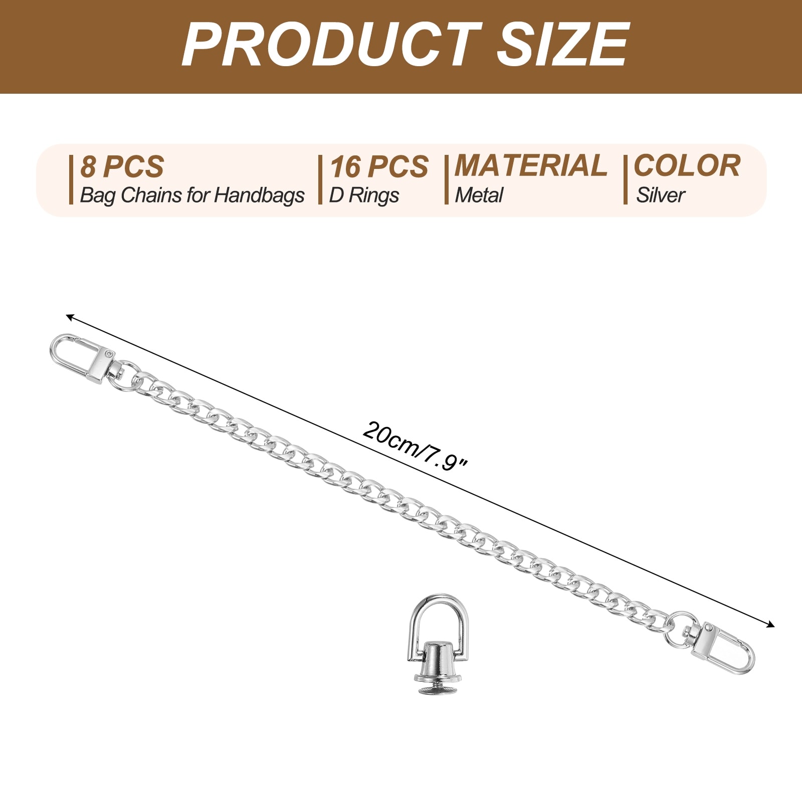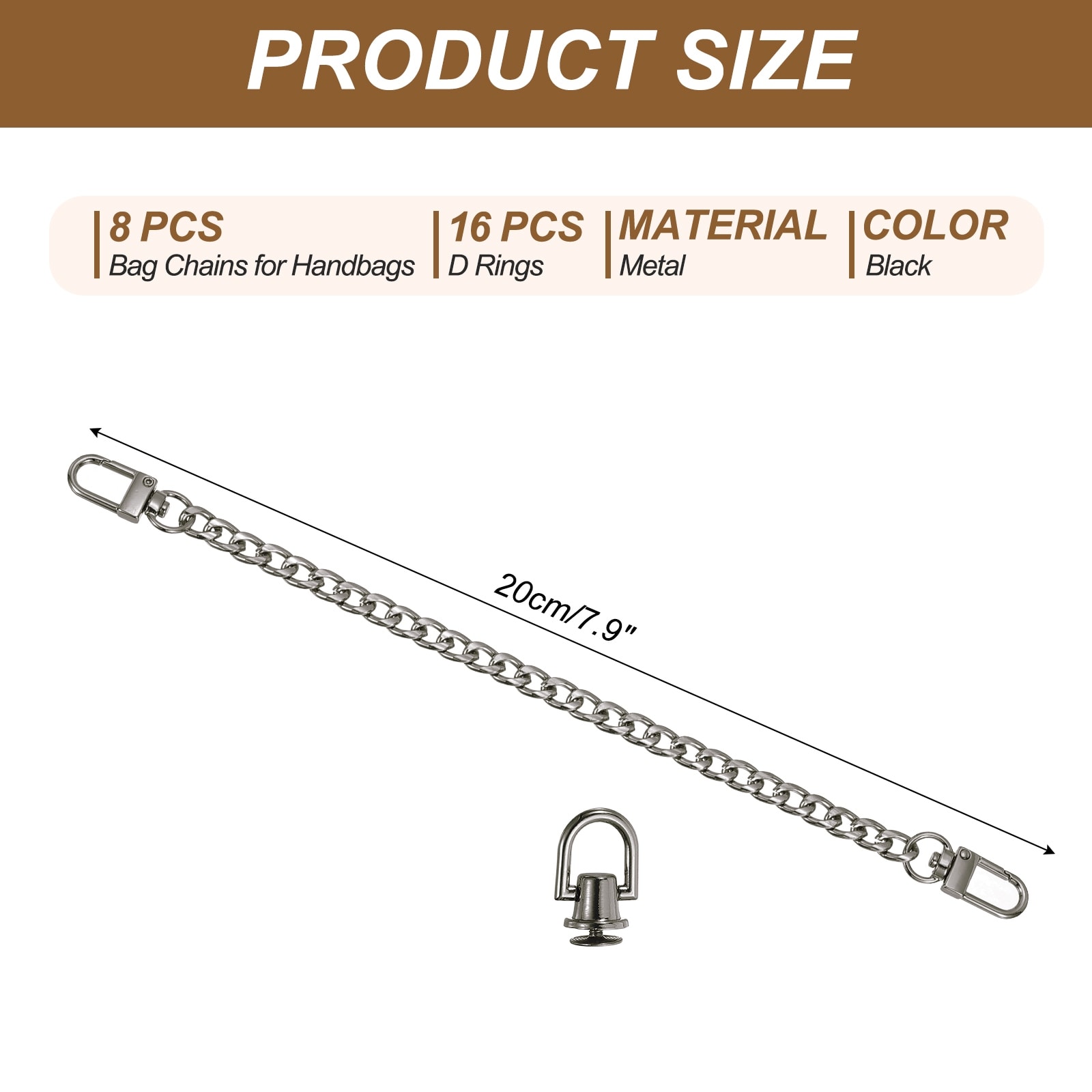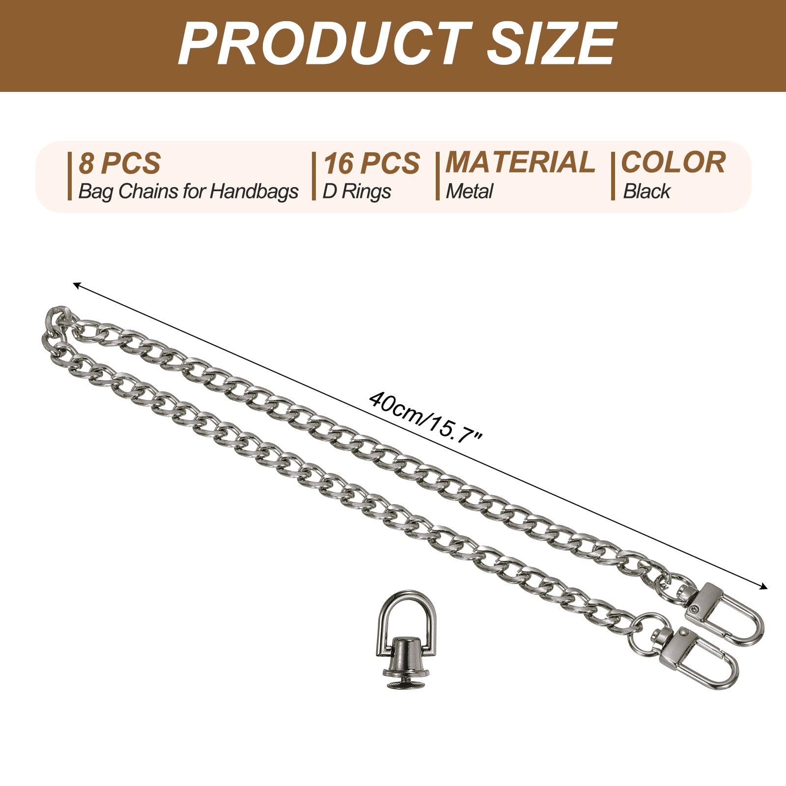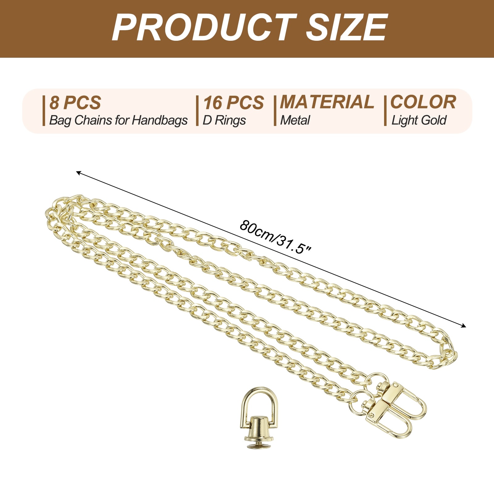 Flat Purse Chain Chain Purse Strap Handbag Chains Crossbody Straps Extender with D-Rings for Tote Wallet