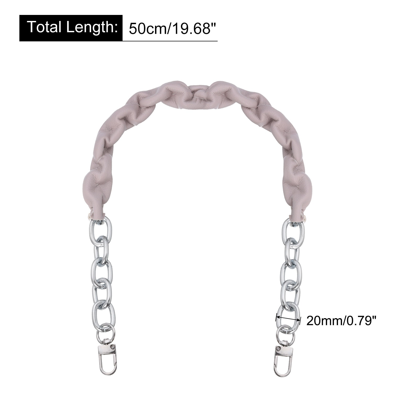 Mini Purse Chain, PU/Metal Purse Chain Handle Replacement Strap for Handbag Shoulder Crossbody Bag - Grey - 50cm/19.7"