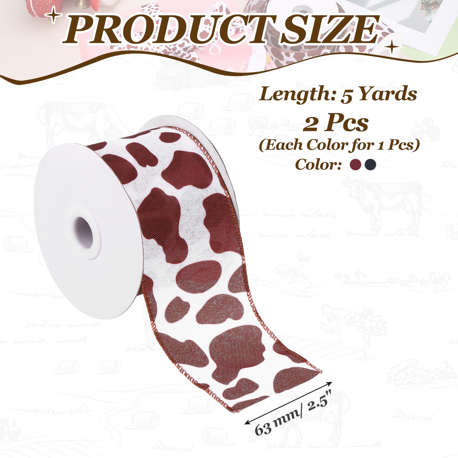 Cow Print Ribbon Set, Grosgrain Animal Print Western Farmhouse Ribbon for Gift Wrapping, Party Decorations, DIY Crafts