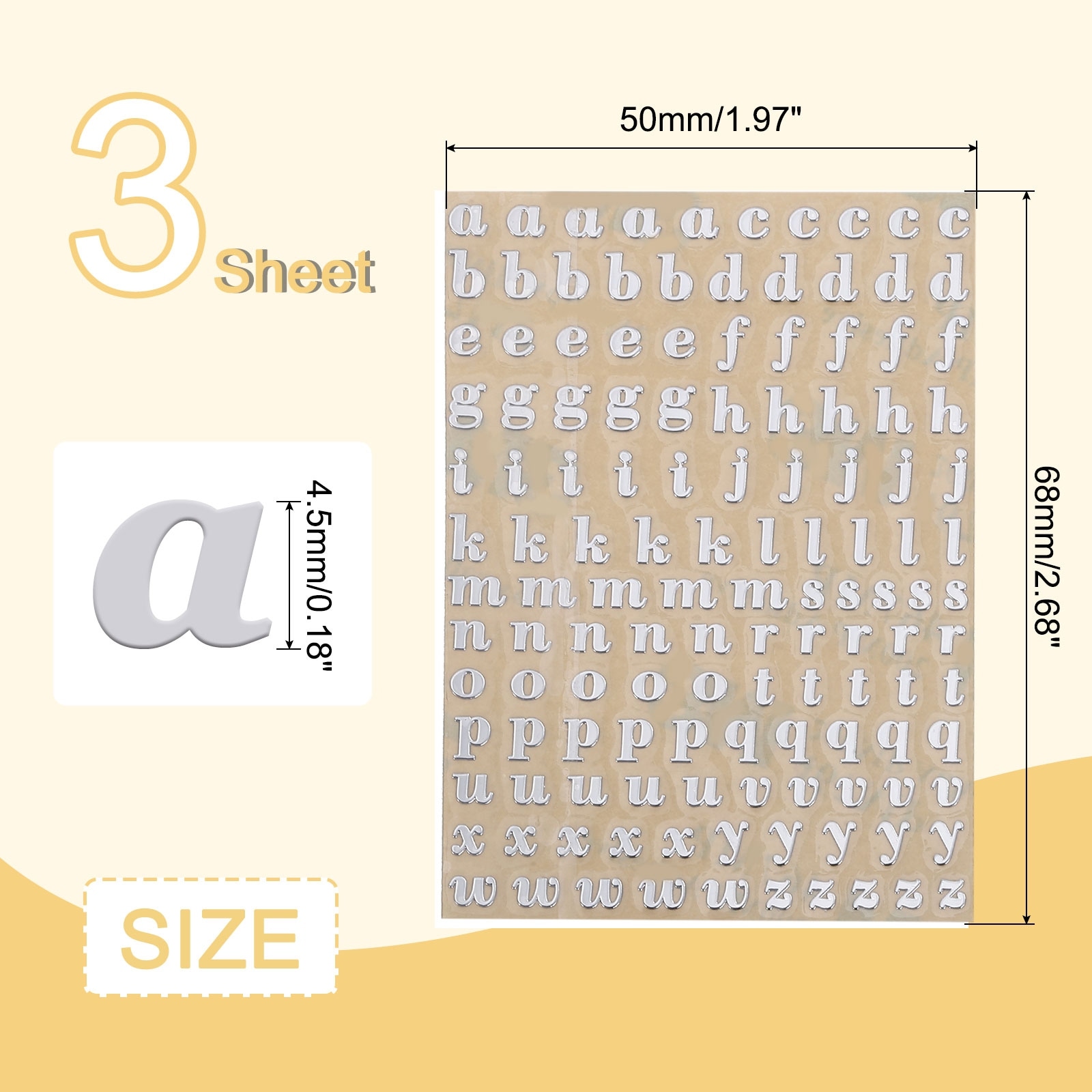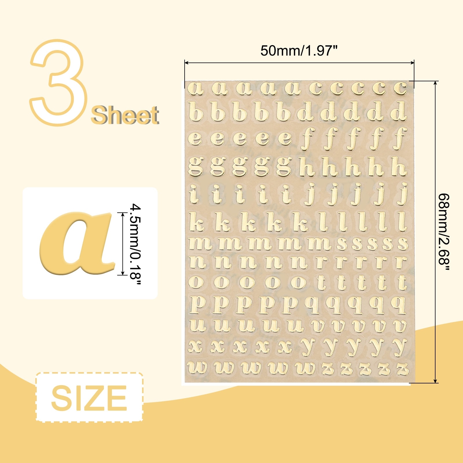 Mini Letter Stickers, 3D Alloy Self Adhesive Lowercase A-Z Alphabet Sticker for Crafts Scrapbooking