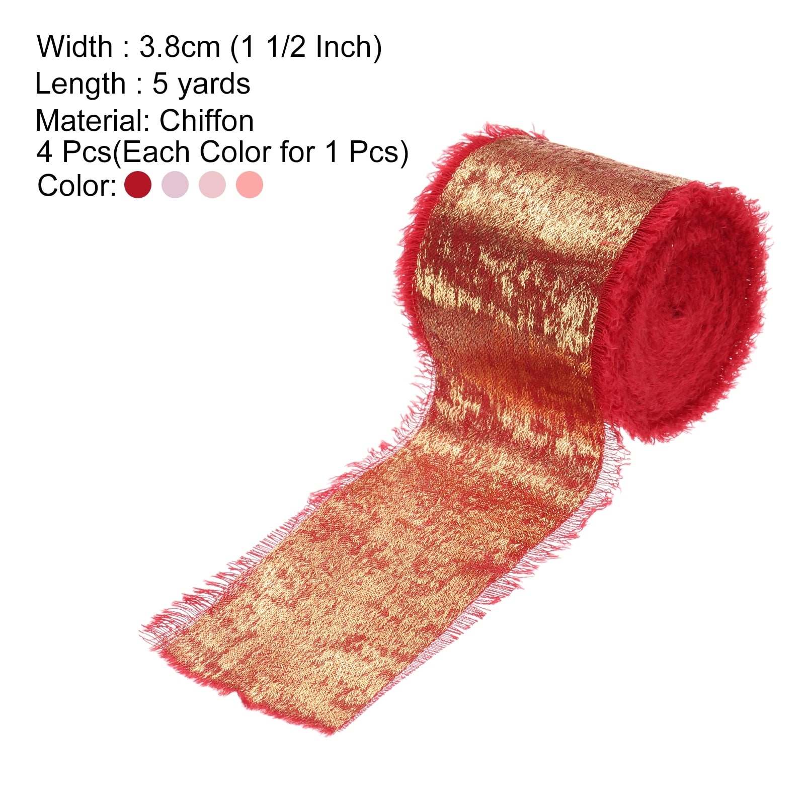 Chiffon Ribbon, Silk Ribbon, Glitter Fabric Ribbon Handmade Fringe Frayed Ribbon for Flower Bouquet Gift Wrap