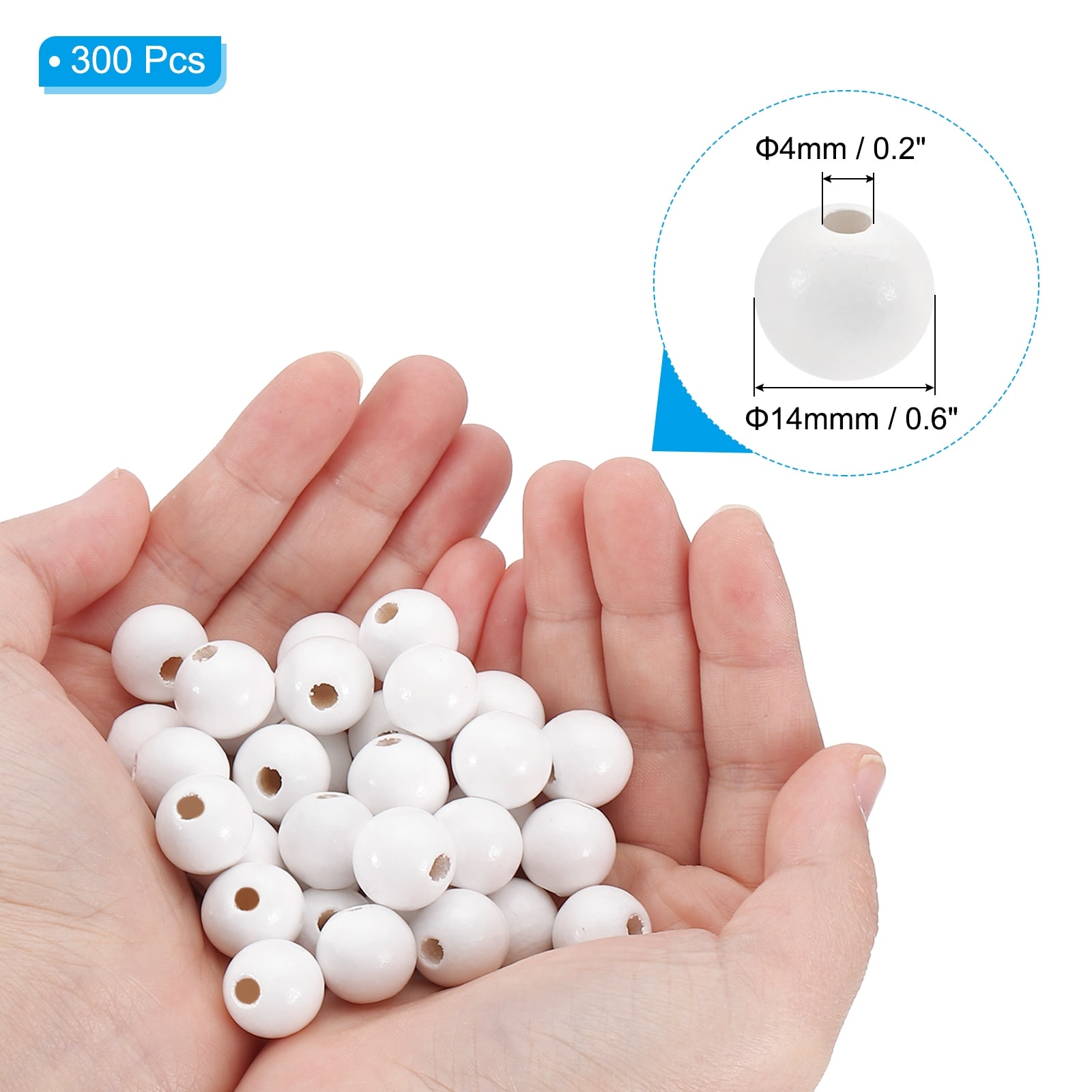 Natural Wood Beads, Wooden Beads Round Loose Beads Spacer Beads for DIY Craft Jewelry Making Home Decoration - White