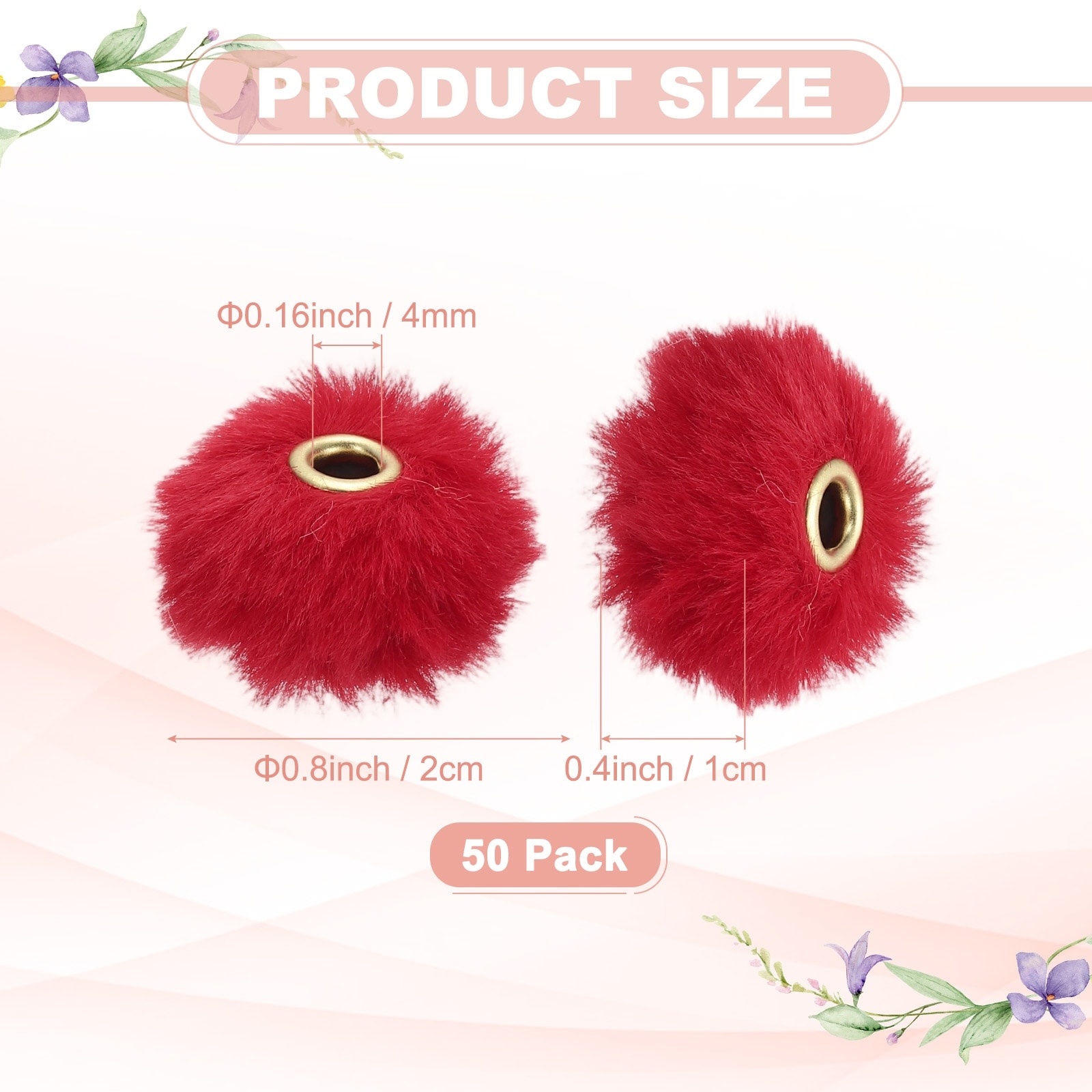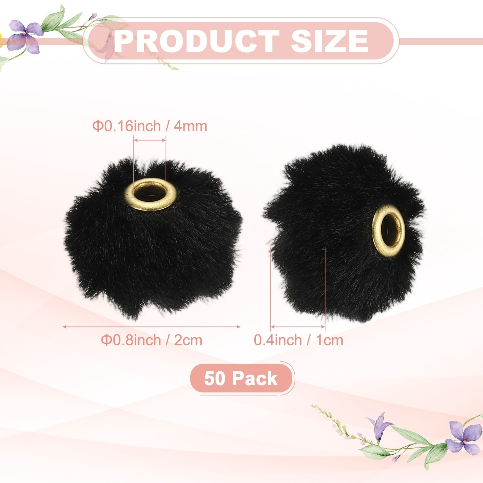 Fluffy Faux Fur Pom Pom Beads, Soft Fuzzy Spacer Bead for DIY Craft/Jewelry Making/Pens - 50 Pcs