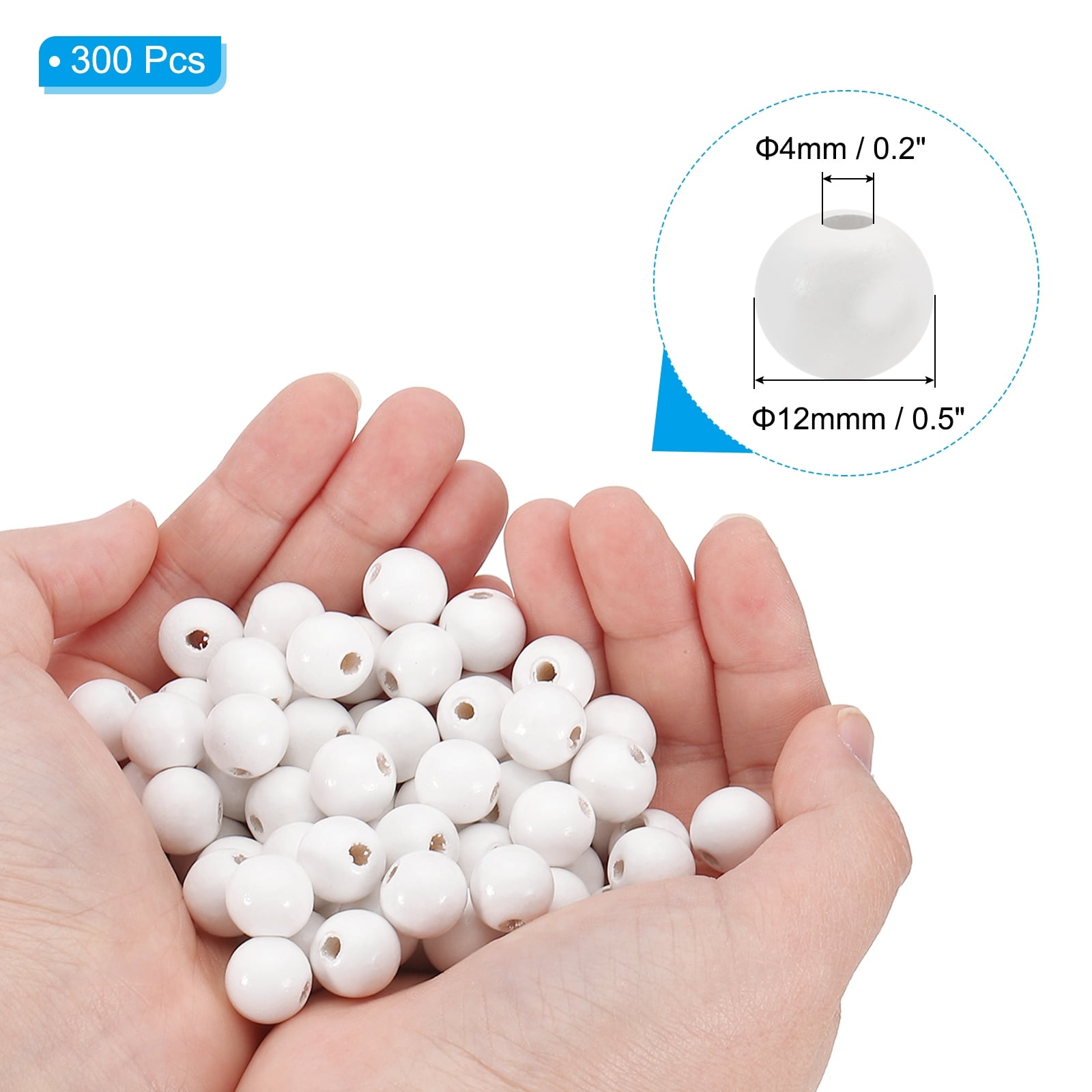Natural Wood Beads, Wooden Beads Round Loose Beads Spacer Beads for DIY Craft Jewelry Making Home Decoration - White