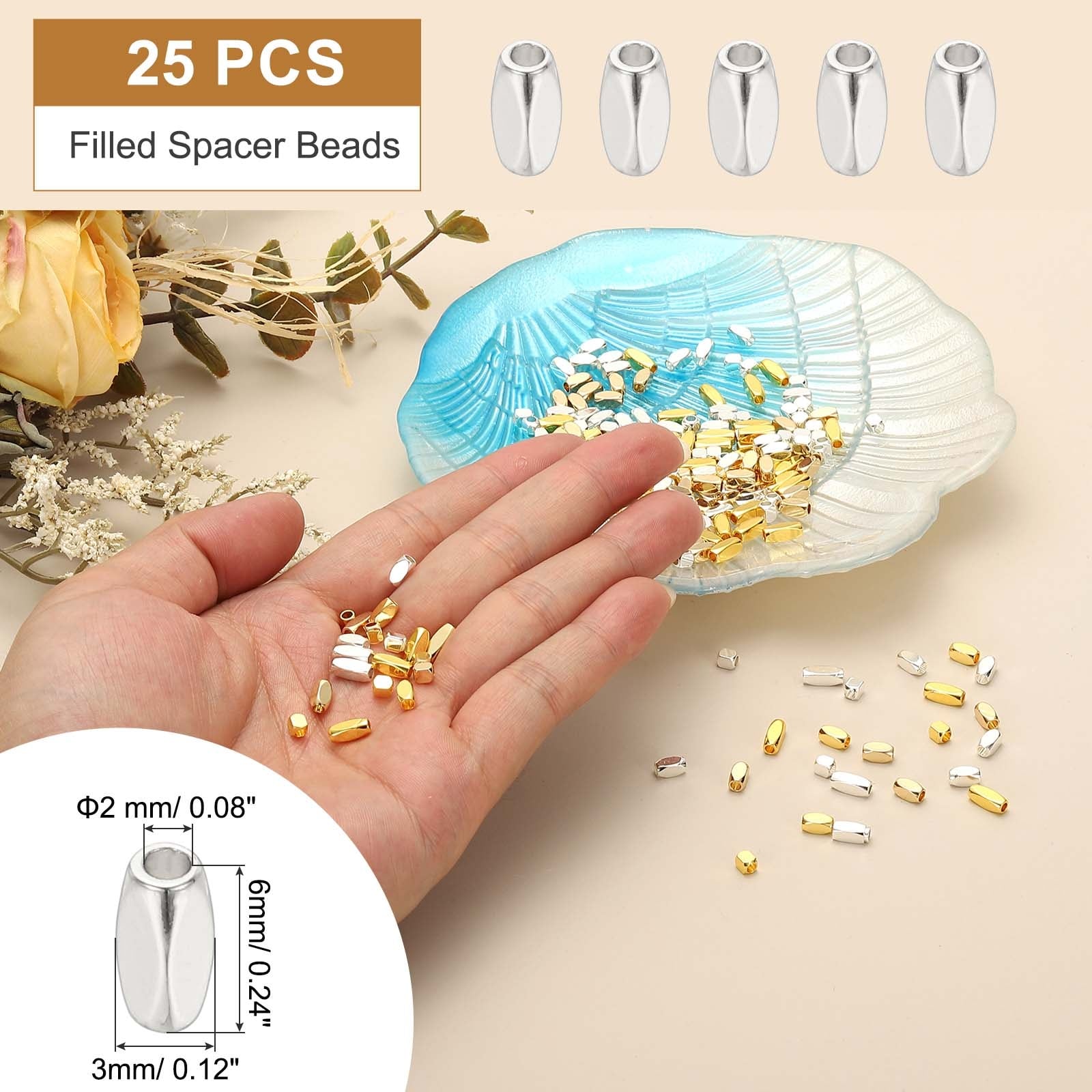 Filled Spacer Beads, Metal Smooth Faceted Tube Tiny Loose Beads for Bracelet Jewelry Making Necklace DIY