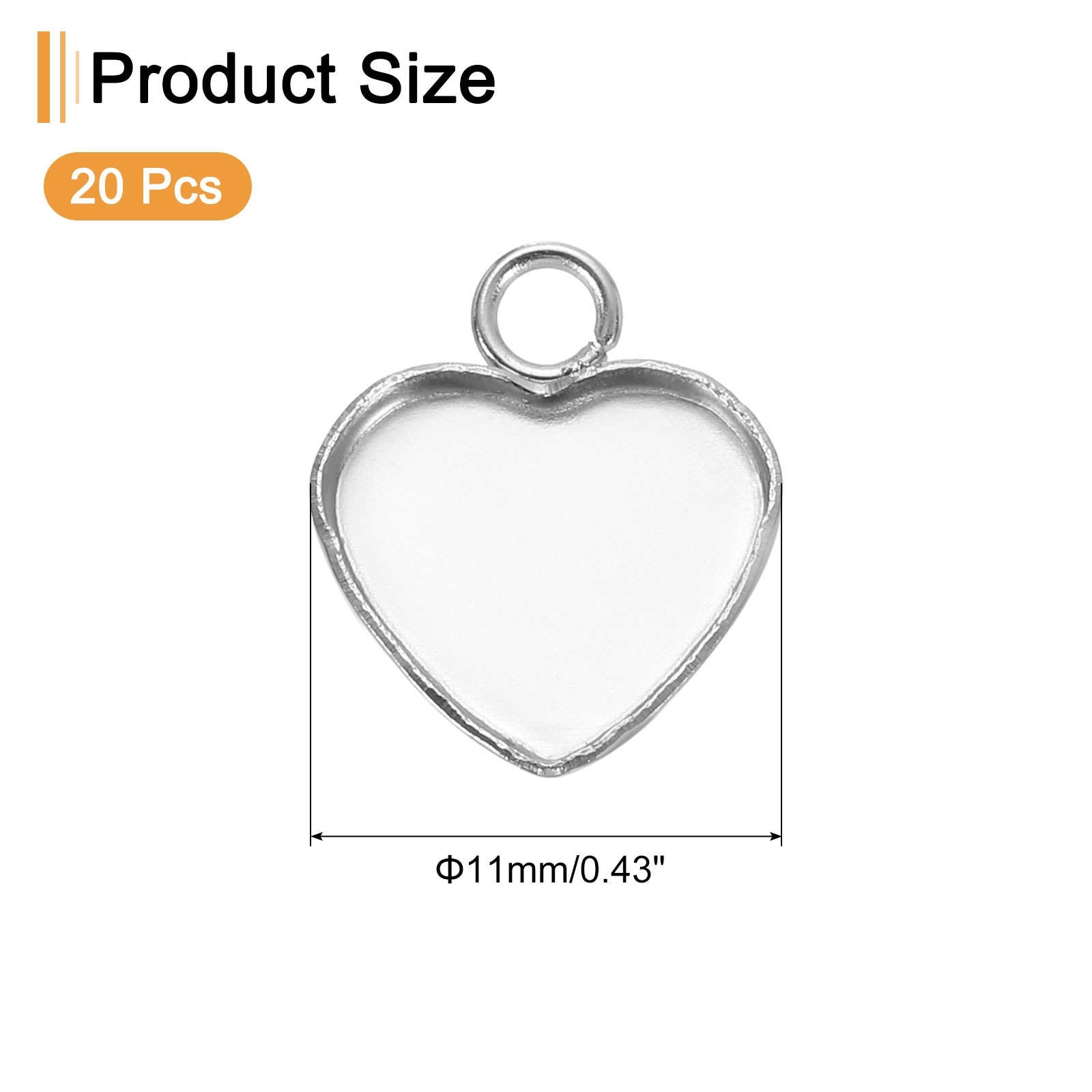 Heart Pendant Blank Tray, Cabochons Setting Blank Connector Base for DIY Jewelry and Making Embossed Photo - Silver