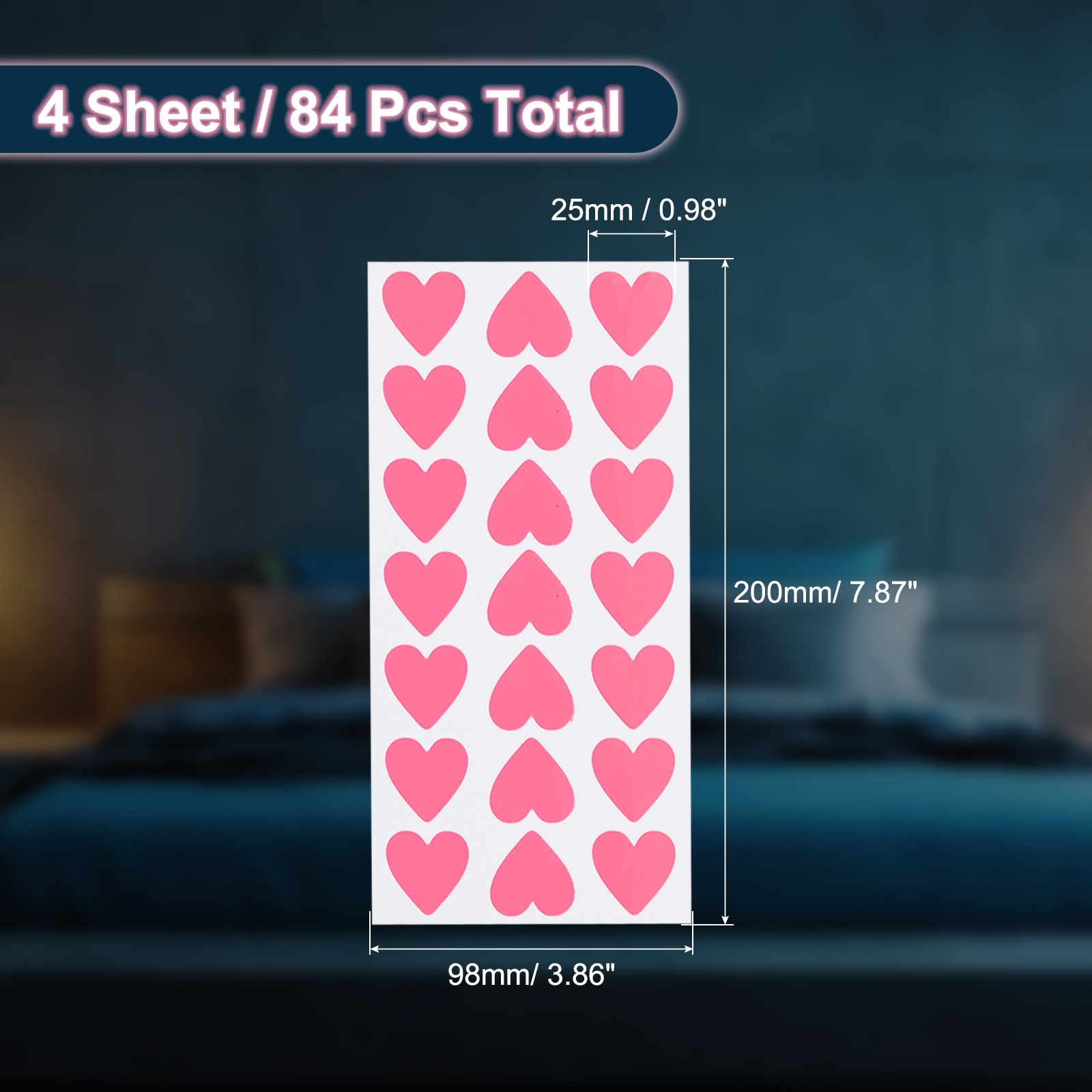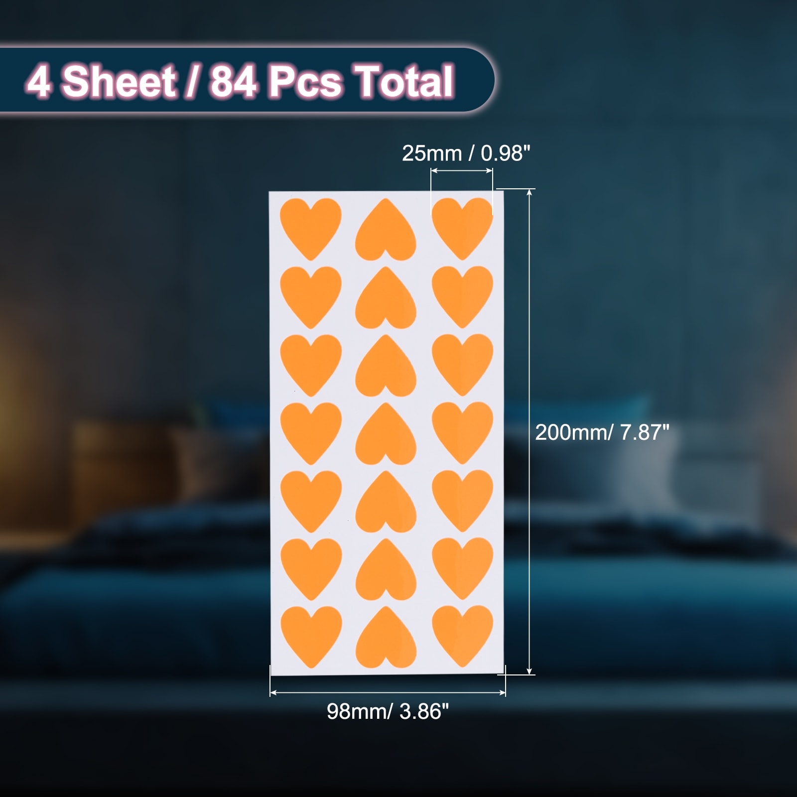 Glow in the Dark Heart Stickers, Heart Luminous Decor - 84Pcs
