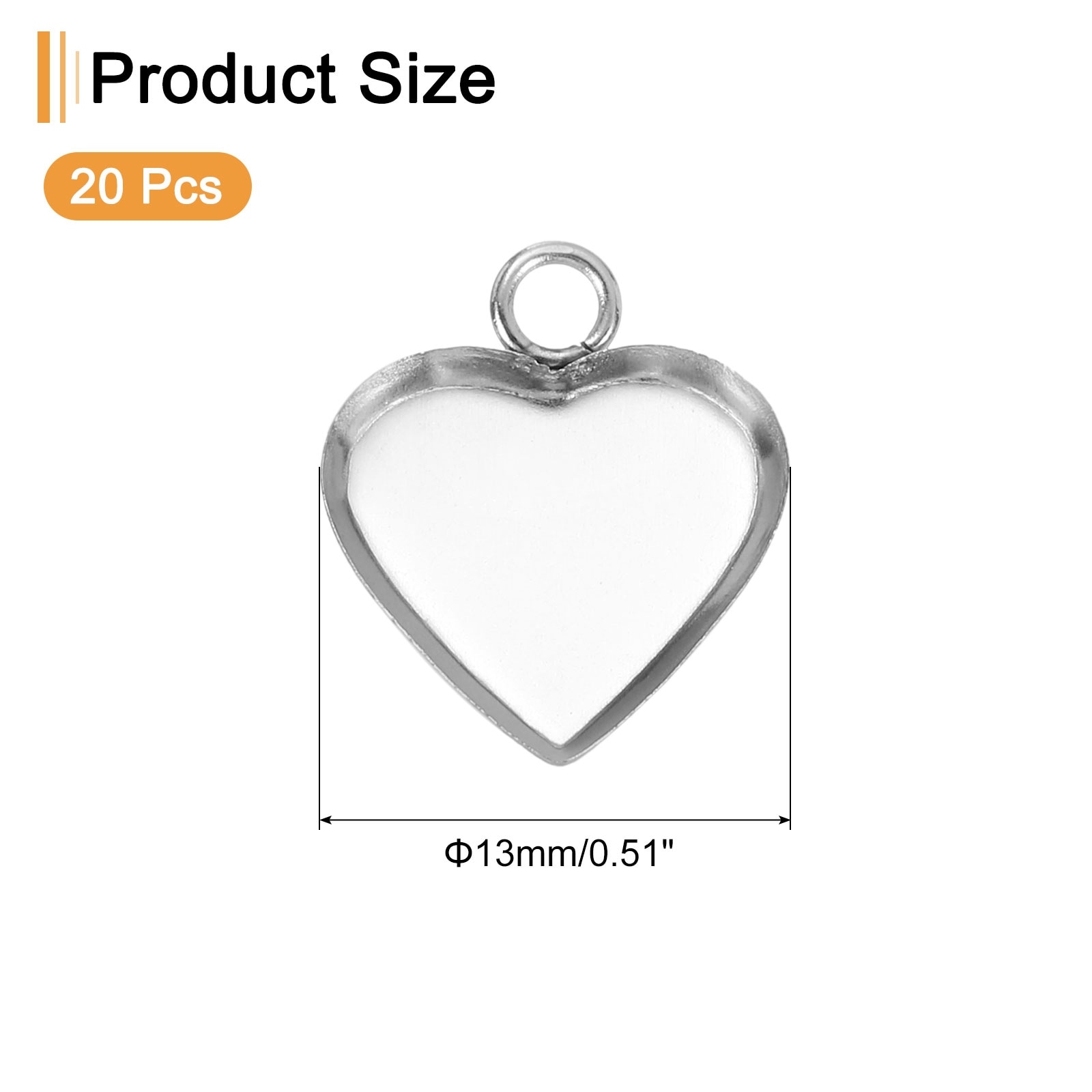 Heart Pendant Blank Tray, Cabochons Setting Blank Connector Base for DIY Jewelry and Making Embossed Photo - Silver